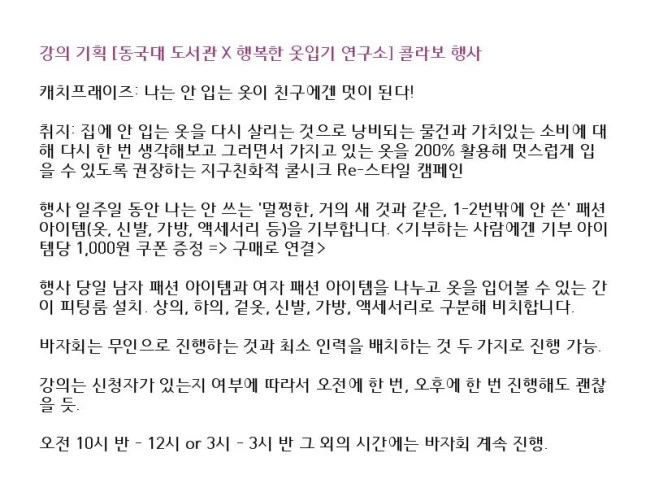 기획한 것이 '나는 안 입는 옷이 친구에겐 멋이 된다.'는 취지의 행사이다.