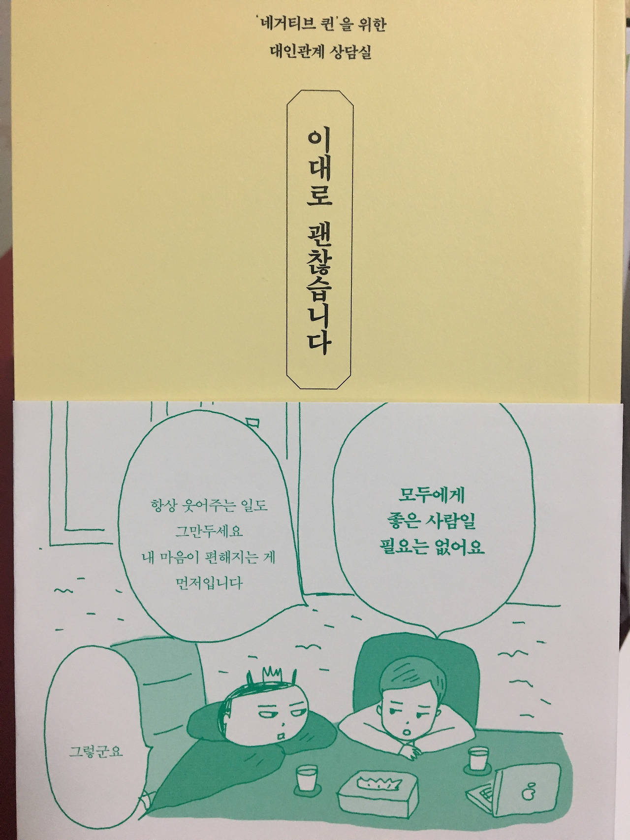 대한민국 네거티브 퀸들에게 추천합니다. #자기만의방 #잘받았습니다^^ #휴머니스트출판사 #네거티브퀸 #이대로괜찮습니다 #전네거티브퀸보다초단순사고러에가까워서 #주위의네거티브퀸들이생각나요 #자기인정과긍정은중요합니다