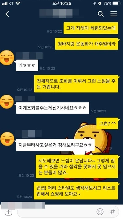 모바일 코칭 중인 수강생과의 대화입니다.사진은 수강생의 허락하에 올립니다. ^^