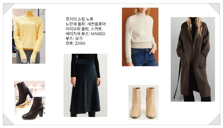 1. <코치의 쇼핑 노트>는 스타일 코치의 아이템 분석 시리즈 콘텐츠입니다. 온라인 상에서 스타일 코치가 괜찮아 보이는 아이템을 선택한 후 그 아이템의 디자인이나 코디, 누가 입으면 괜찮을지 등등에 대해서 설명하는 것으로 콘텐츠를 통해 구독자들이 나를 위한 소비, 주체적 쇼핑에 한 발짝 더 다가갈 수 있도록 돕습니다.