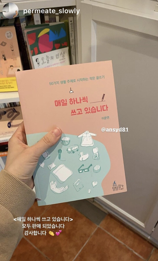 <매일 하나씩 쓰고 있습니다>를 입고한 책방(리지 블루스) 영업 종료 소식을 접했고,