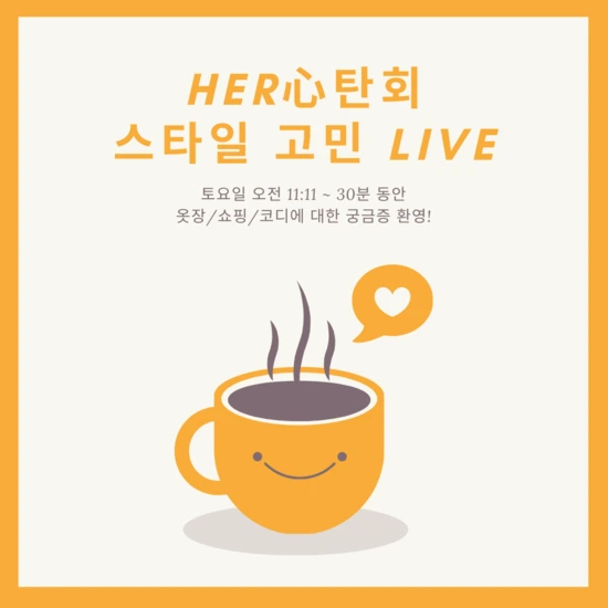 이번 주 [스타일 고민 Live]는 3/28(토) 오전 11시 11분에 시작합니다.댓글로 고민 남겨주시면 영상에서 답변드립니다. ^^https://www.youtube.com/channel/UC547OiOVD-yWRuqbOGKKlUw?view_as=subscriber