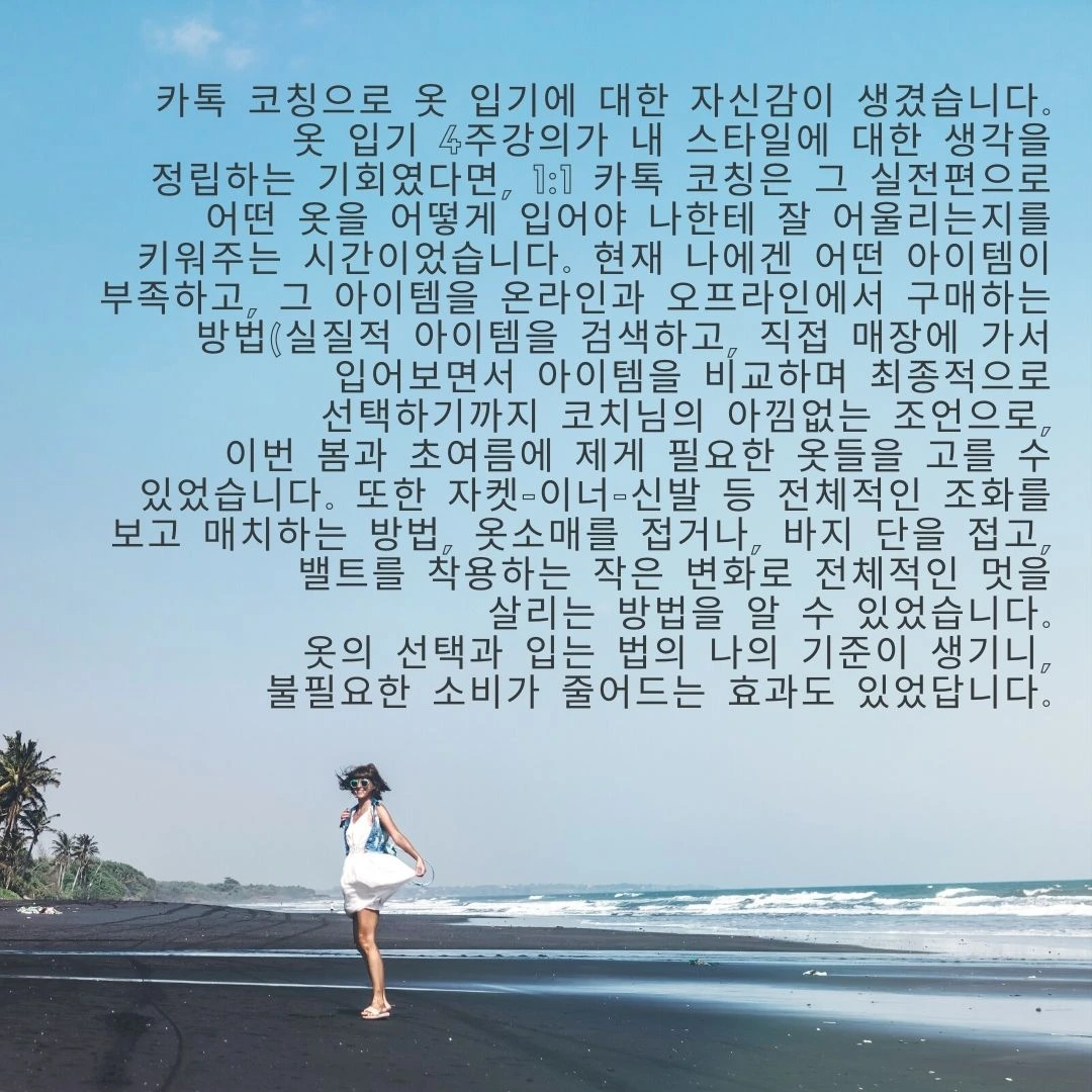 옷글옷글 코치. 옷으로 삶을 채우는 옷경영을 시작하다 [옷경영 삶채움 연구소], [작심삶글:쓰기의시작], 경향신문 매거진L에 <셀럽의 옷> 연재 중