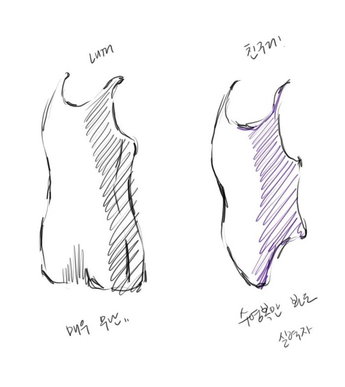 "너 수영복 너무 큰데? 그렇게 여유가 있으면 몸과 수영복 사이에 물이 들어가서 저항이 커져."