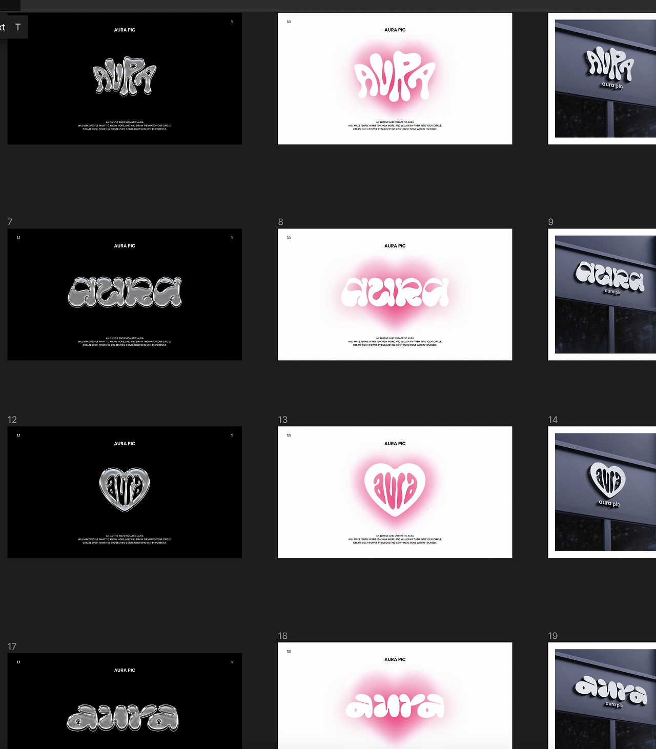 수목은 아우라픽의 로고와 톤앤매너를 잡는데 썼다. 4가지 정도 시안을 뽑고 주변 친구들에게 피드백을 부탁했다. 셀프사진기는 대중적인 영역이다 보니까 친구들의 직감적인 선택이 너무너무 궁금했다!
