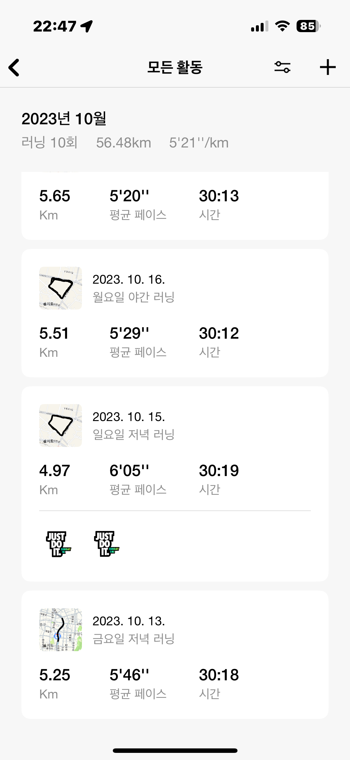 코로나 시절, 1.5km도 너무 힘들어서 못 뛰던 내가 마침내 50분 만에 10km를 뛰게 되었다. 이때도 그저 격일마다 30분만 뛰어보자는 마음가짐이었는데, 그것이 루틴이 되니 자연스레 더 뛰고 싶었다. 잘 뛰고 싶어졌다. 그래, 계획과 생각과 걱정이 우선이었던 나에게는 '규칙적으로 해보자'라는 마음가짐만 있으면 되는가 보다. 규칙적으로 브런치스토리에 연재하고, 규칙적으로 네이버블로그를 글 쓰고, 규칙적으로 영어 공부를 20분 정도라도 해보자 등등.. 잘해보자는 욕심은 벗어던지고 매일, 격일, 꾸준히 해보자는 마음가짐으로 행동을 하면 나는 자연스럽게 잘해지고 싶은 욕구가 생기고, 그렇게 실력이 생기나 보다.