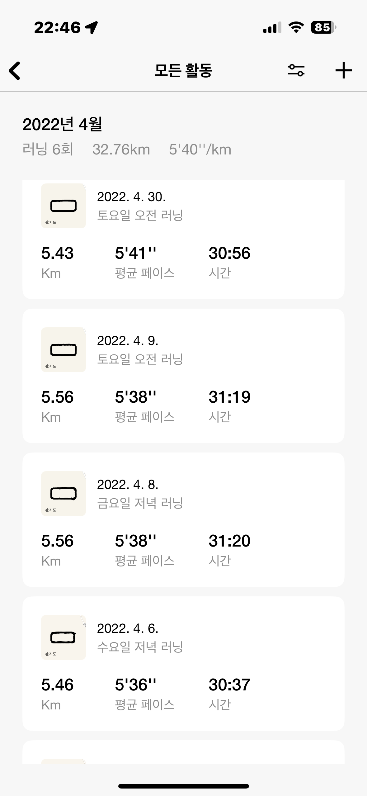 군대에서 매일 뛰면서 정강이에 피로골절 직전까지 올뻔한 경험이 있었기에 러닝과 살짝 거리조절을 했다. 격일로 뛰자는 마음가짐이 있었다. 루틴이라고는 없었던, 수많은 루틴과 규칙적인 삶을 위해 세웠던 계획과 실패만 가득했던 내 인생에서 달리기라는 루틴이 생겼다. 정말 신기한 경험이었고, 이것은 분명 나를 성장하게 만들었다.