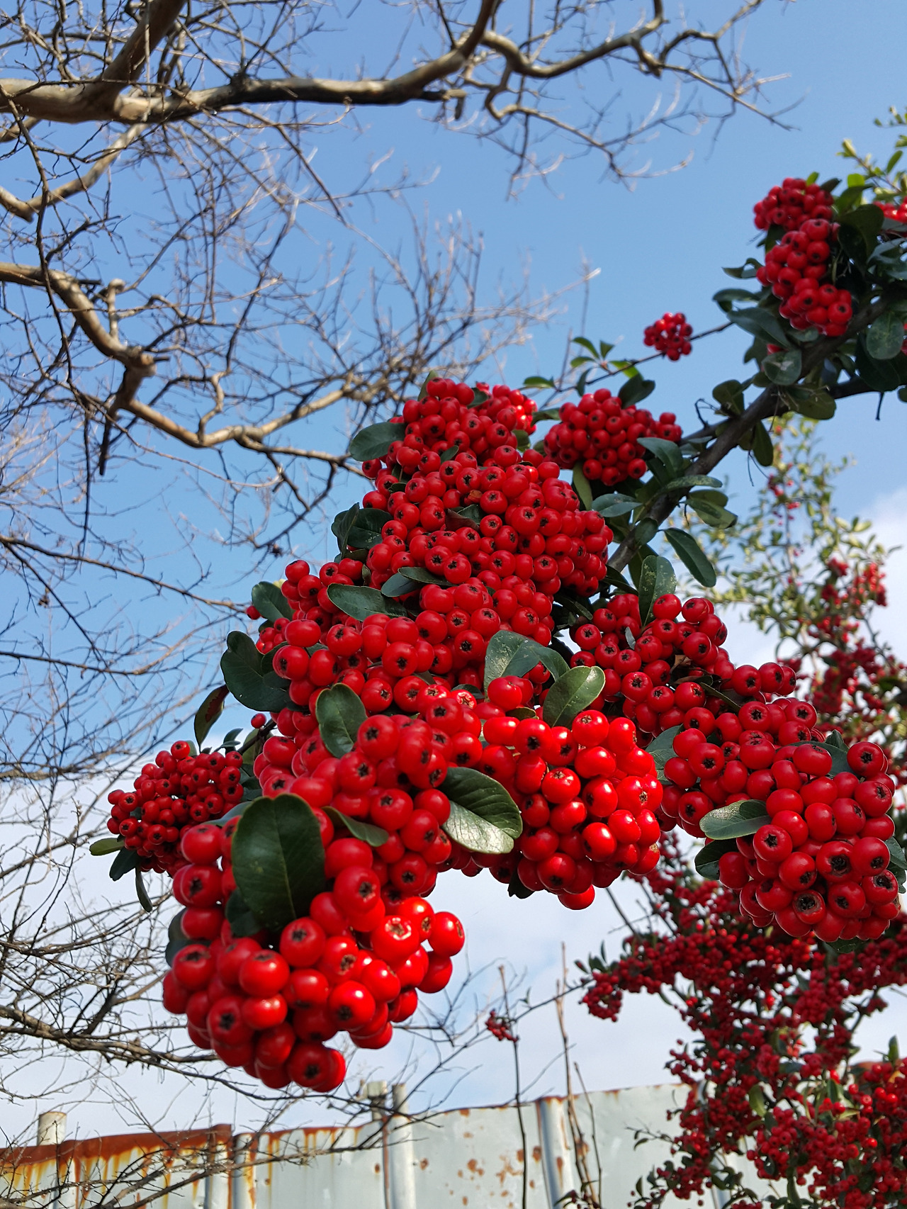 어우렁더우렁 소담스럽게 어우러진 피라칸사스의 열매를 보면서