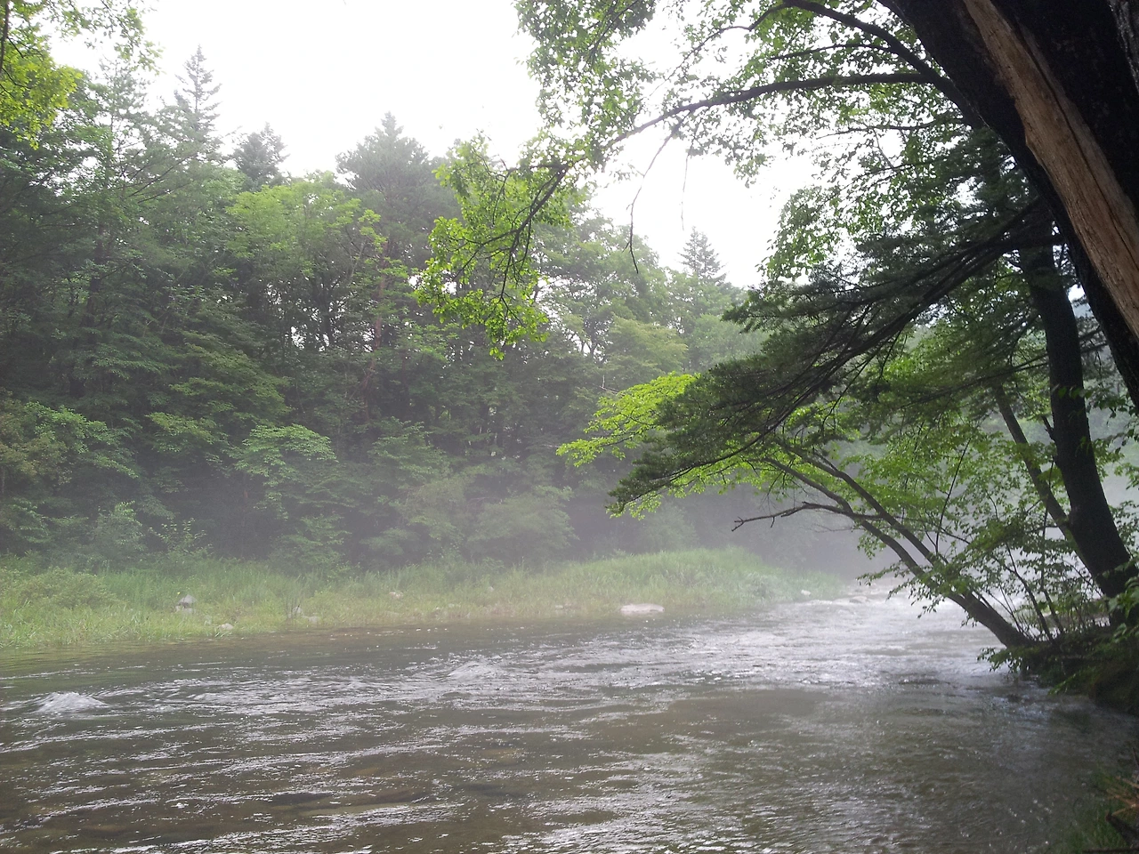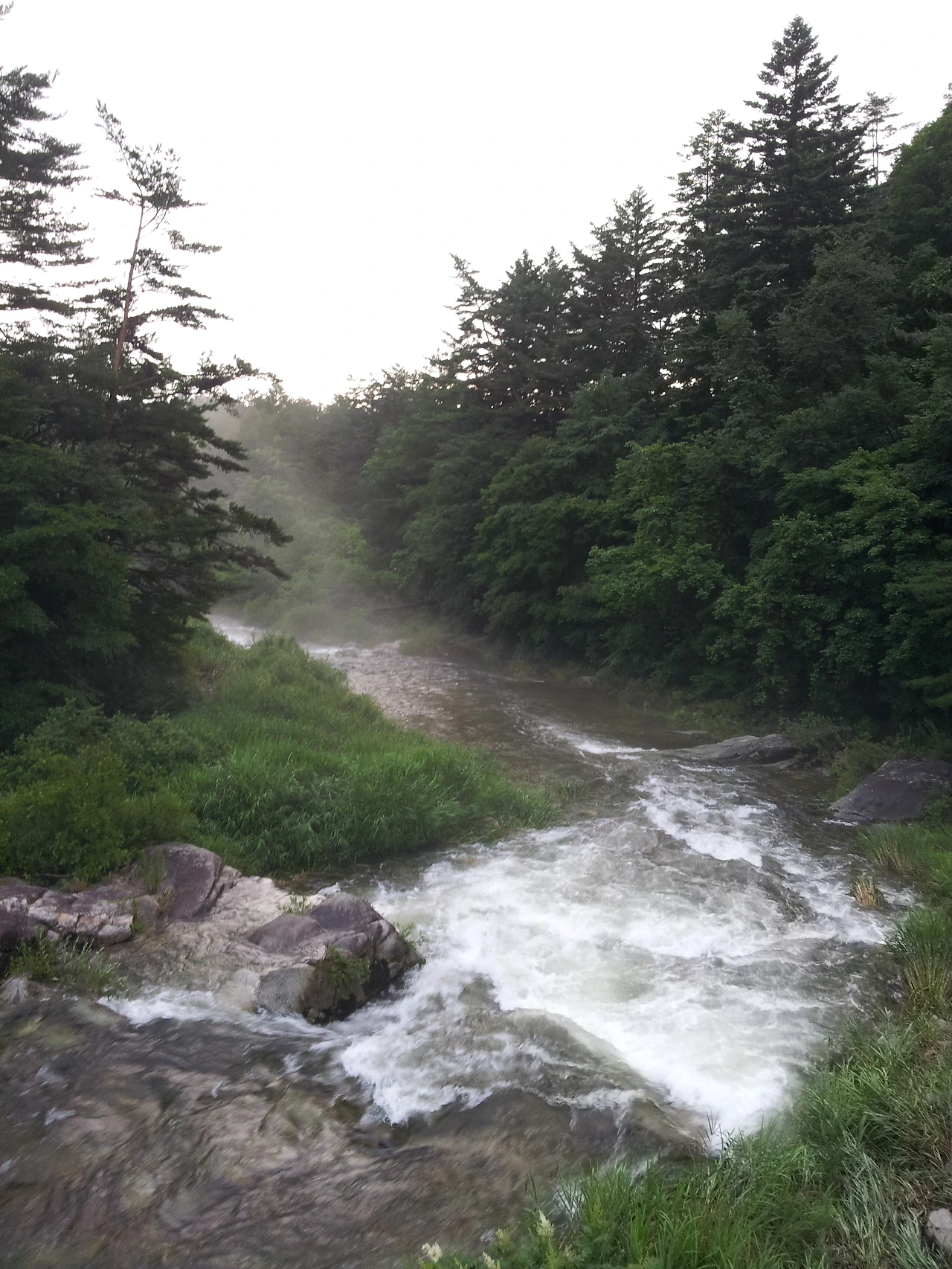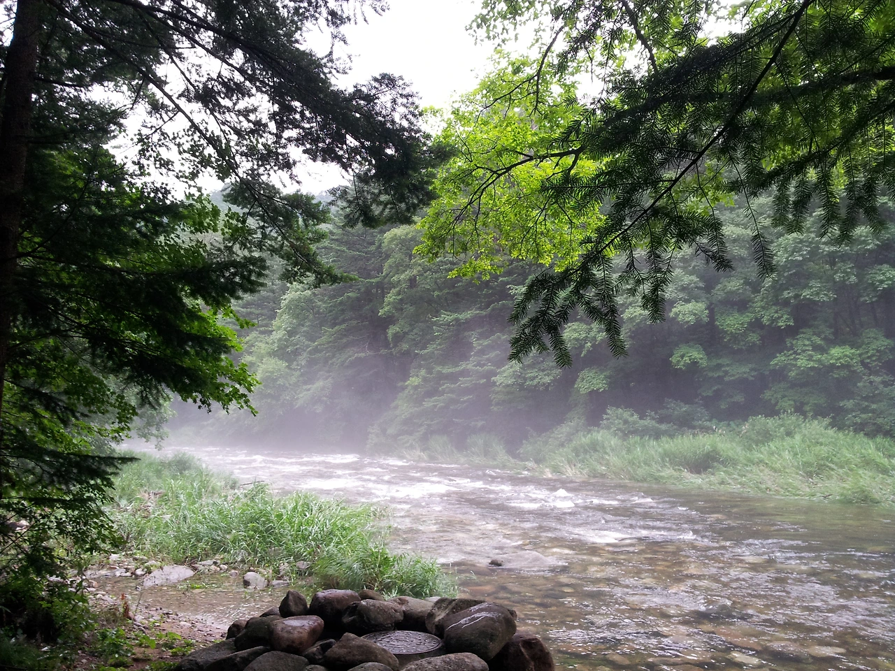 물소리에 이끌려 계곡 쪽으로 가니 옅은 안개가 스멀스멀 오르고 있었다.