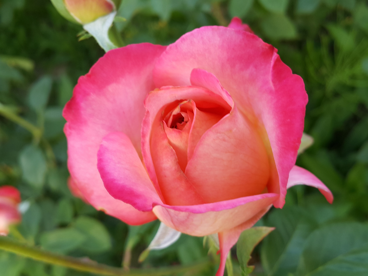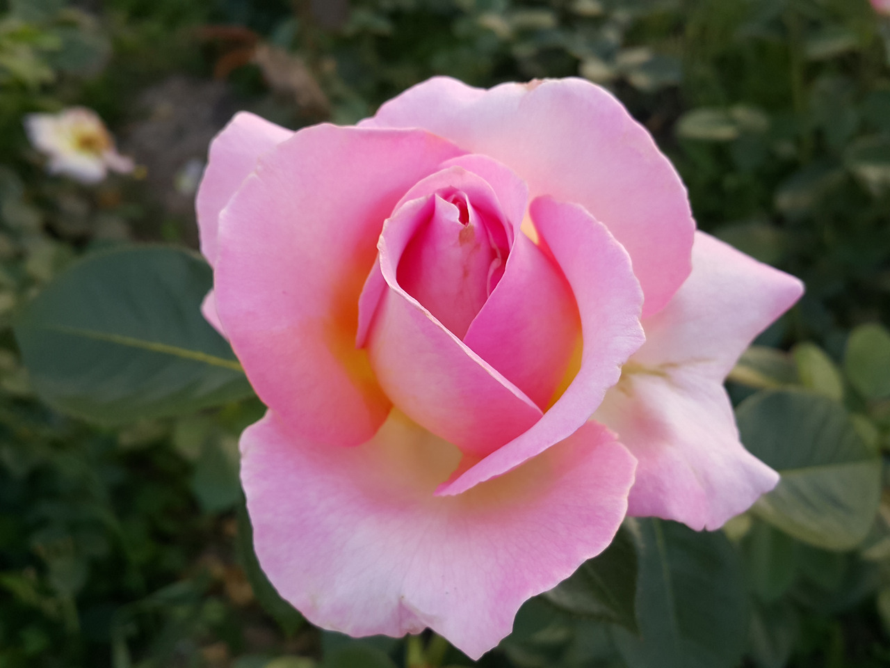 지는 석양에, 화려한 절정의 시기를 지난 장미를 보면서