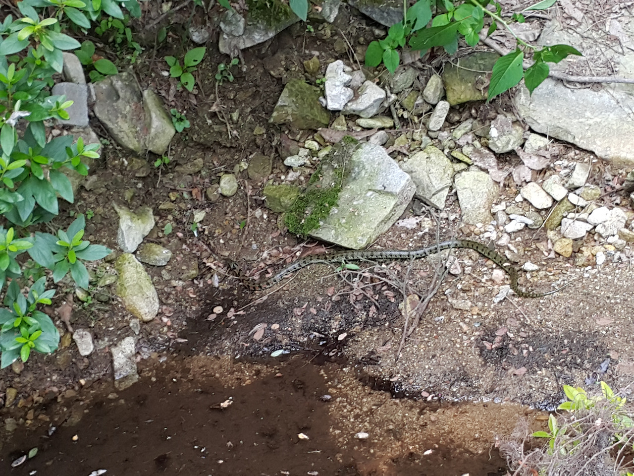 가보니 뱀 한 마리가 천천히 자리를 이동하고 있었다...