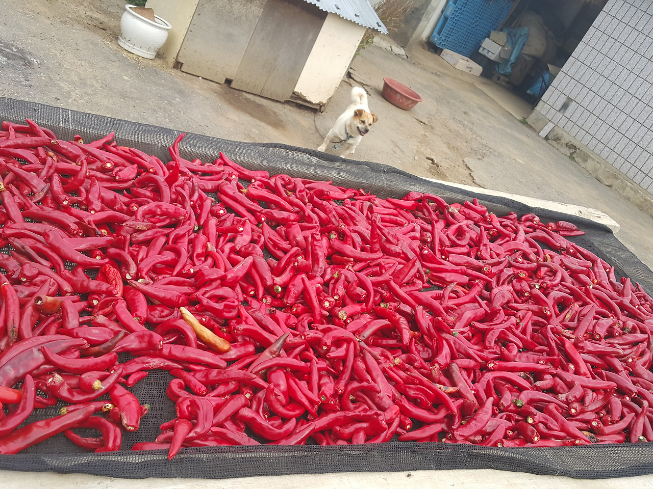 그 앞으로 잘 여문 고추가 해를 기다리며 누워있다.