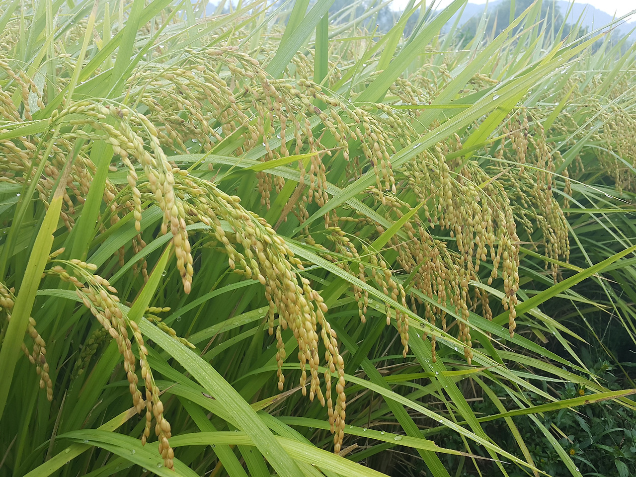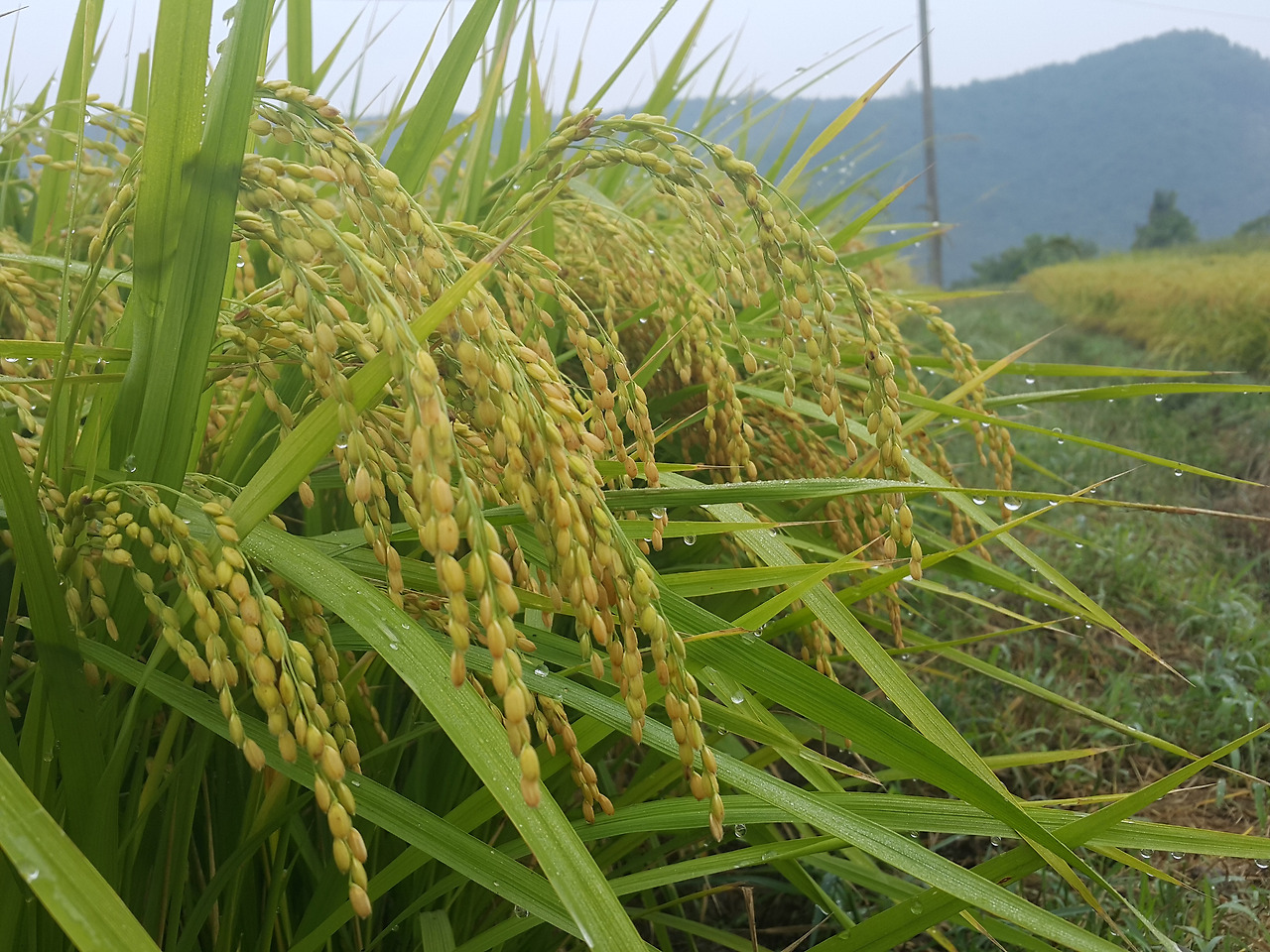 이슬 함빡 머금은 벼이삭이 햇살에 달궈진 만큼 무게를 더해