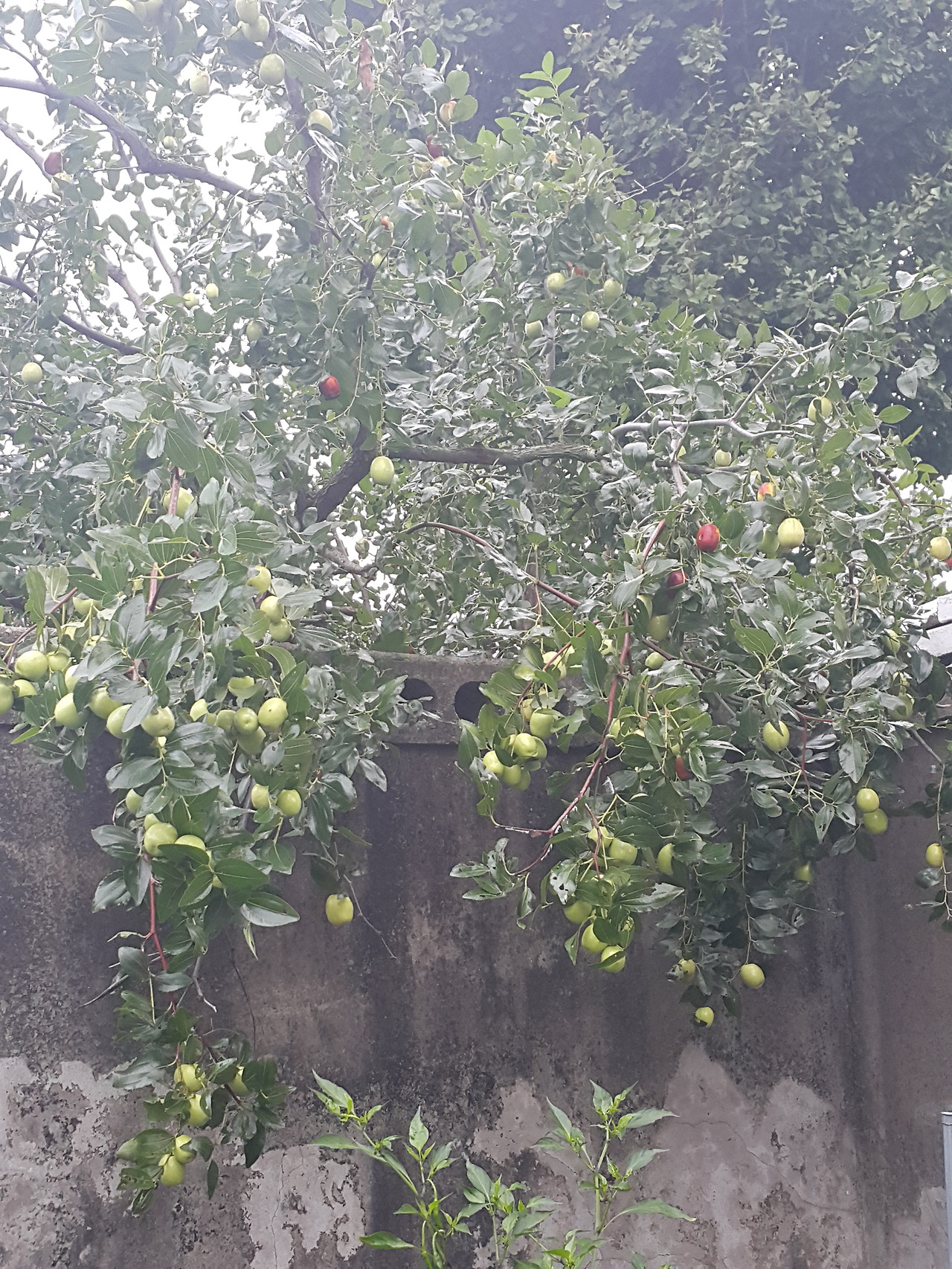 조금만 힘을 가해도 허물어질듯한 담장 너머로 들어온 대추나무가지...