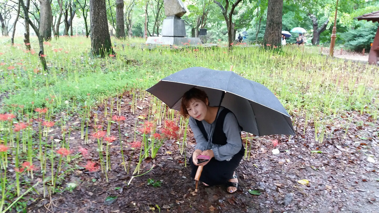 그 붉은빛이 촉촉이 내리는 가을비를 머금고 감성쟁이를 흔들고 있었다.