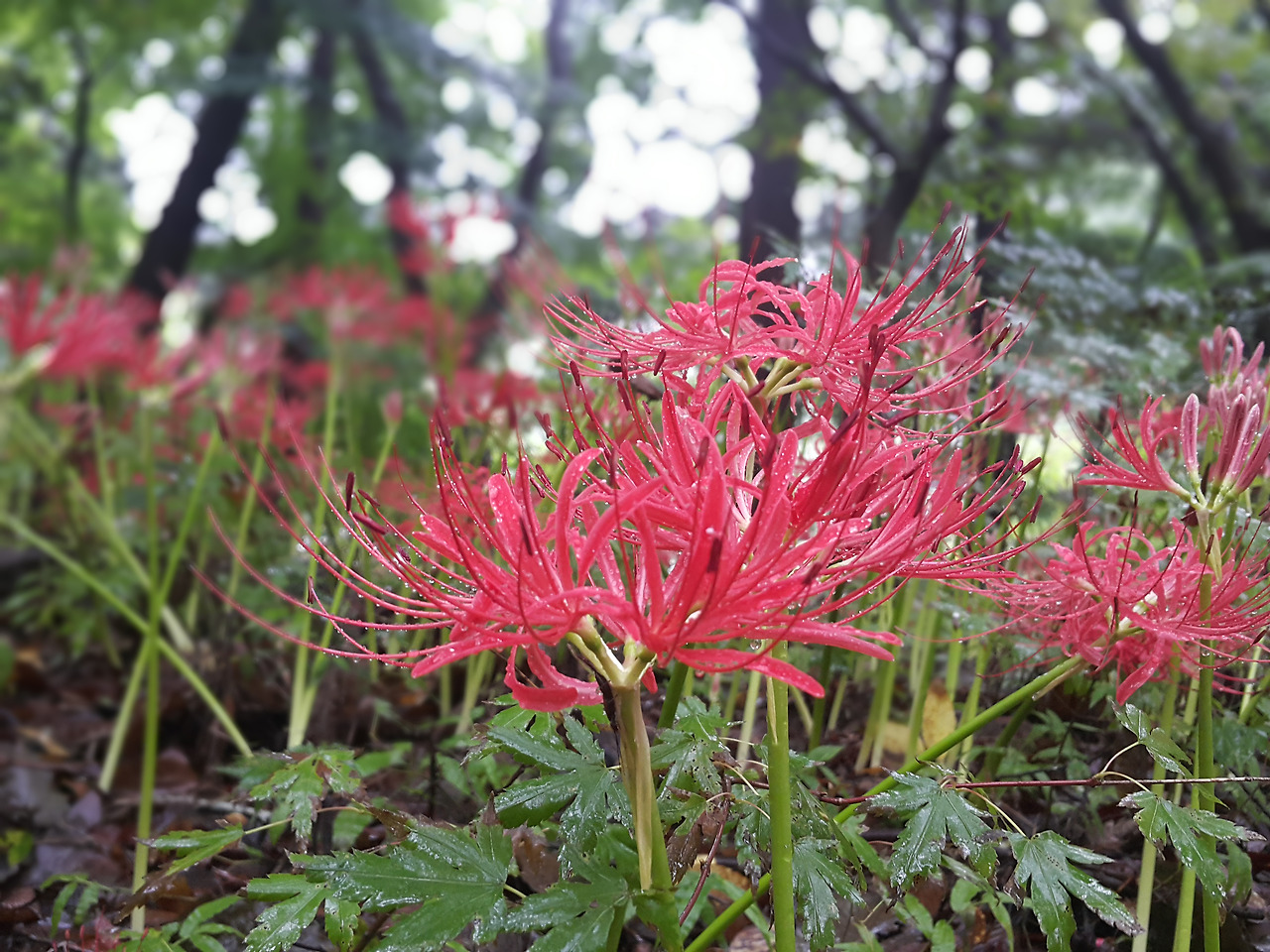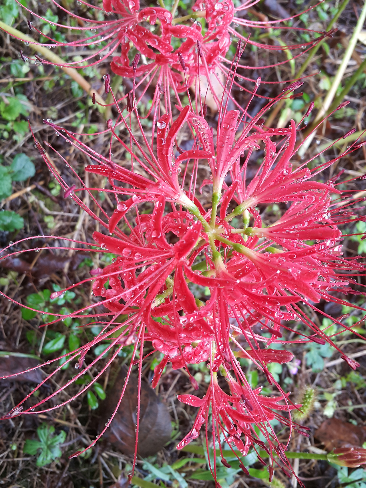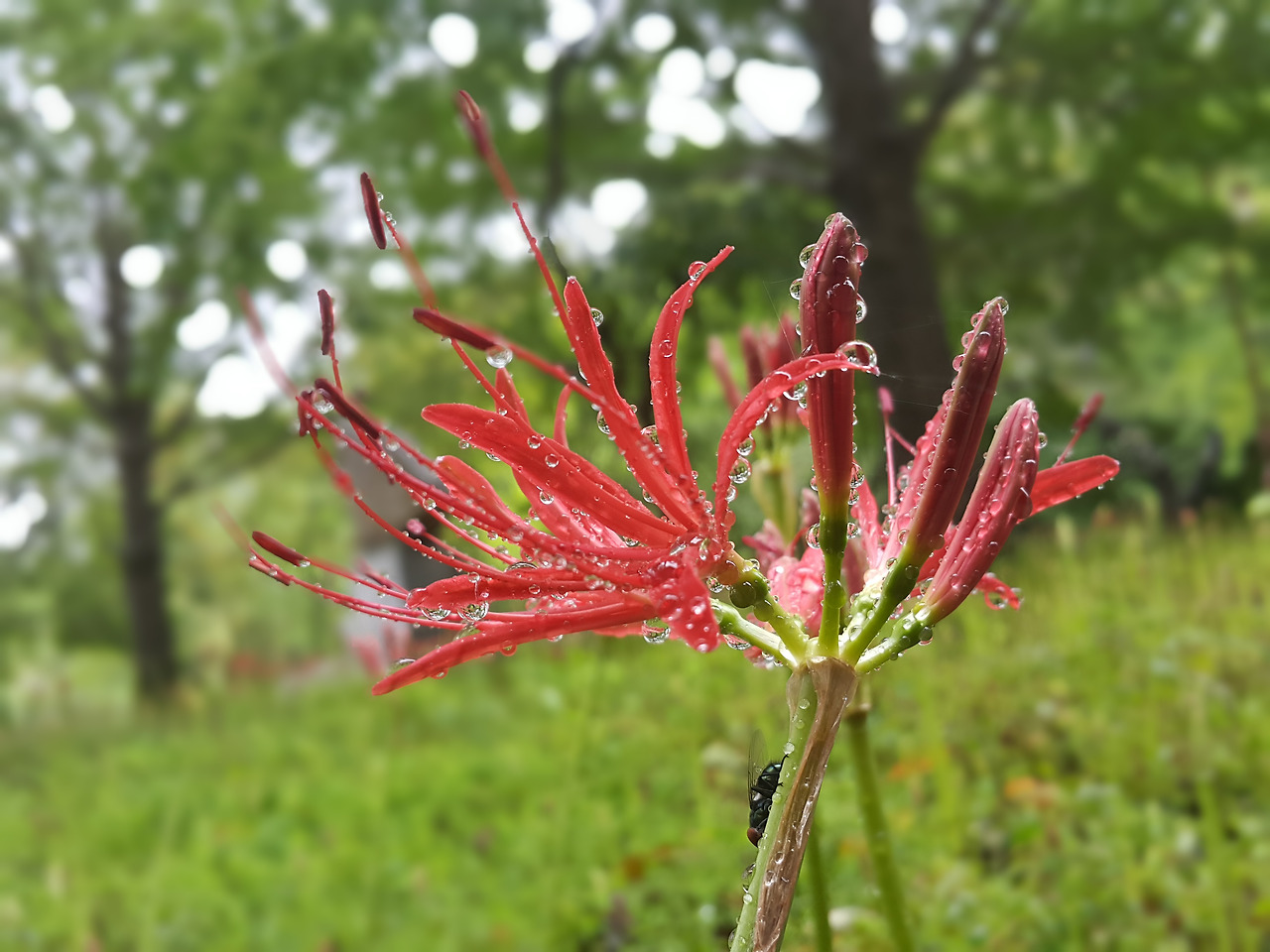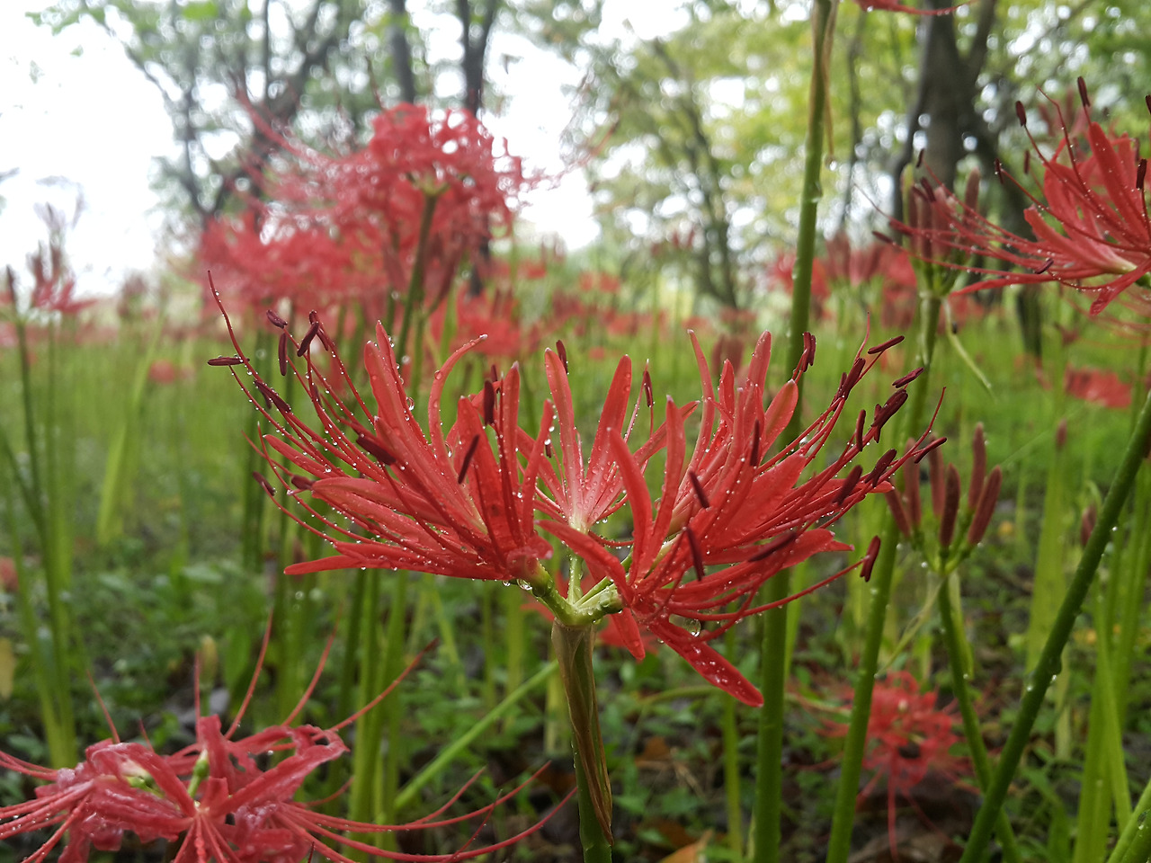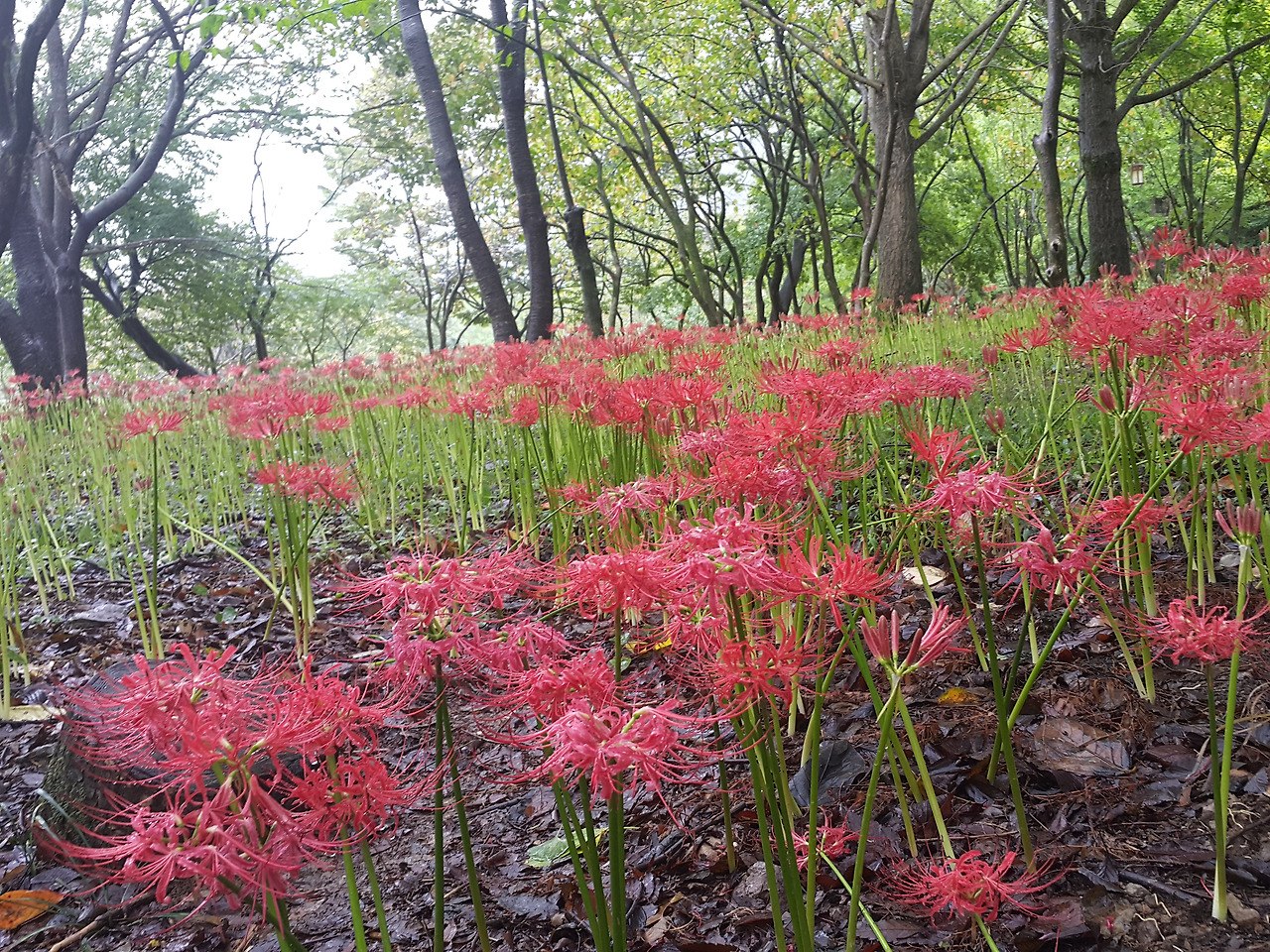 '석산은 꽃대의 높이가 30~50㎝ 정도로 자라며, 반그늘이나 양지 어디에서나 잘 자라고, 물기가 많은 곳에서도 잘 자라는 품종이다. 피처럼 붉은 빛깔의 꽃과 달걀 모양의 비늘줄기가 가진 독성 탓에 ‘죽음의 꽃’으로 여겨져 왔는데, 그래서인지 꽃말도 죽은 사람을 그리워하는 ‘슬픈 추억’이다.'