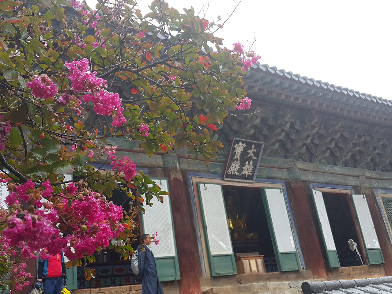 백팔배를 마치고 대웅보전 앞의 만세루에서 연잎차를 마시니 온몸의 피로가 풀렸다.