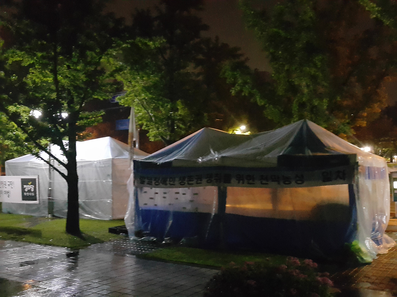 농성장의 아침이 찾아올 즈음,
