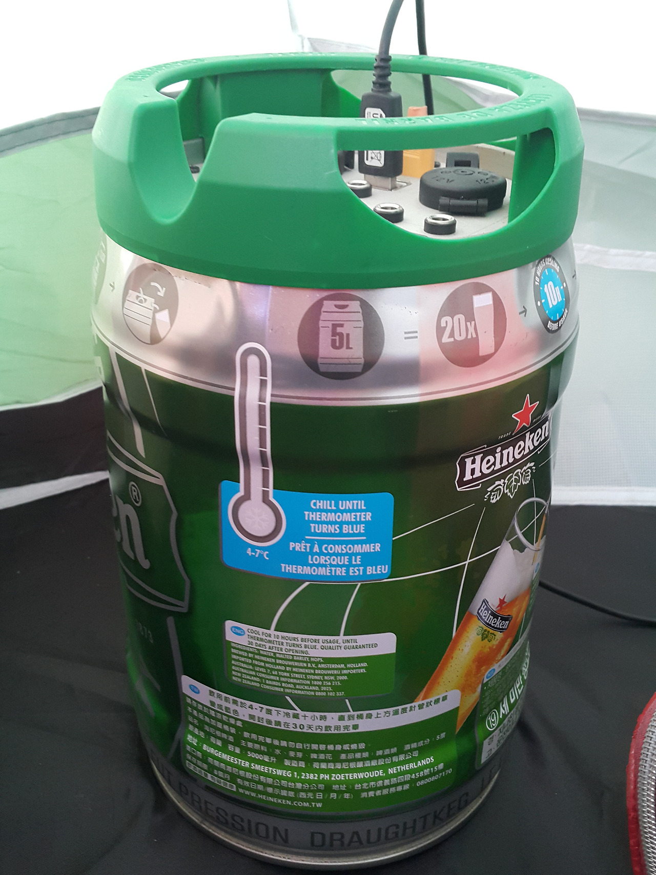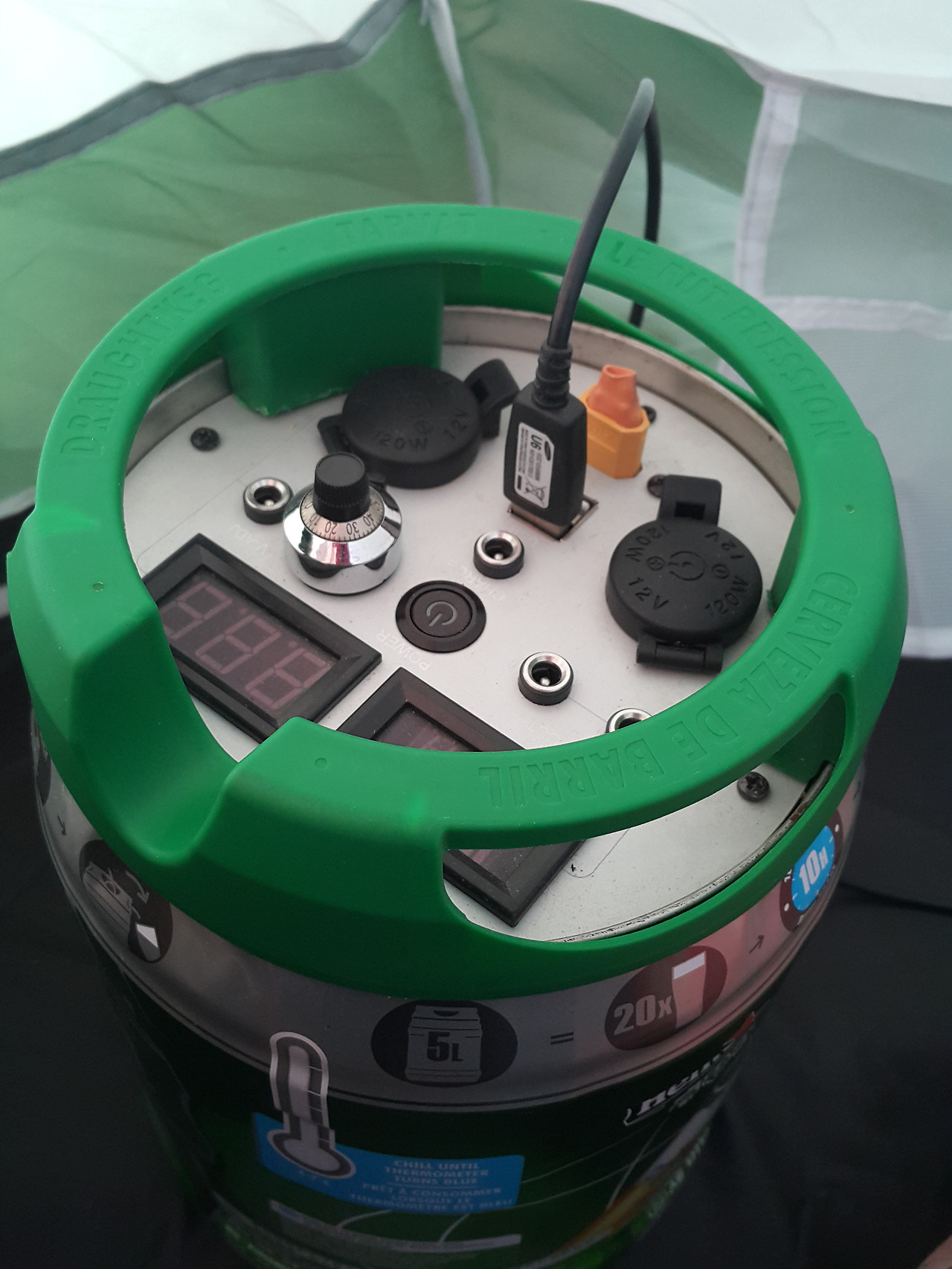 맥주통에 꽂으니 주변이 환하게 밝아졌다.