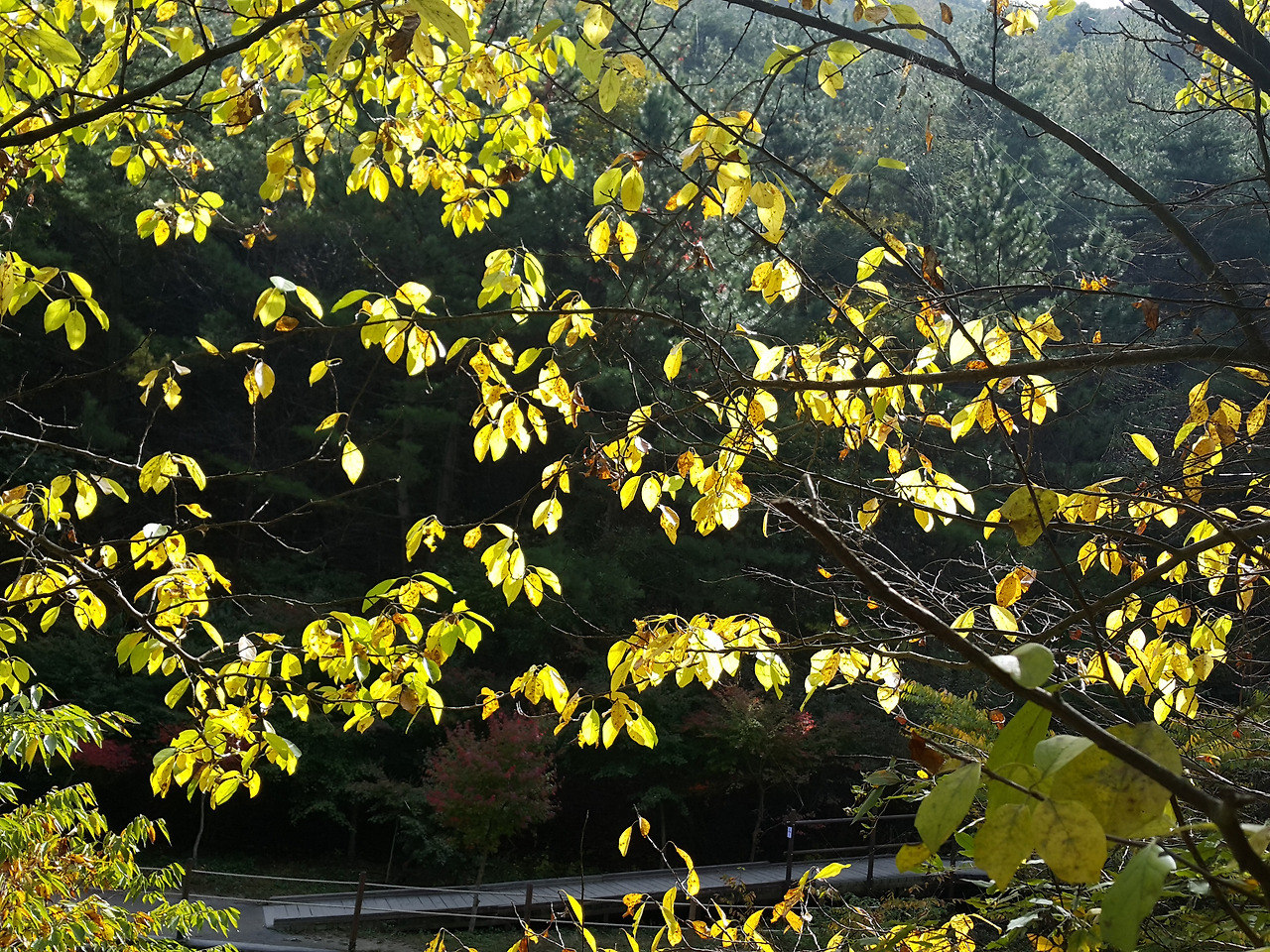 그 아래로 하나 둘 물들어가는 나뭇잎...