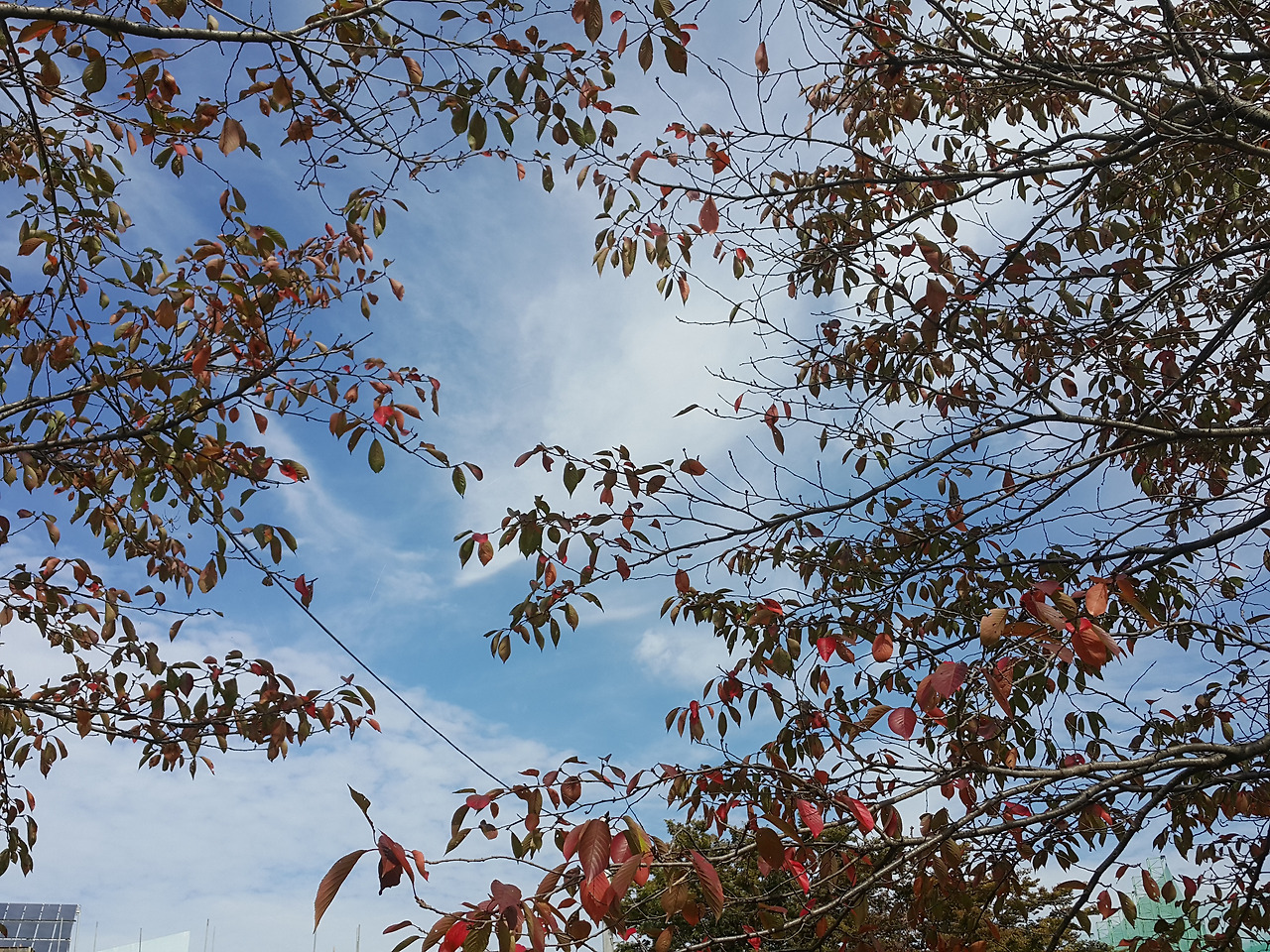 나무 사이로 보이는 하늘 호수가 내 마음인 양 활짝 웃어주니