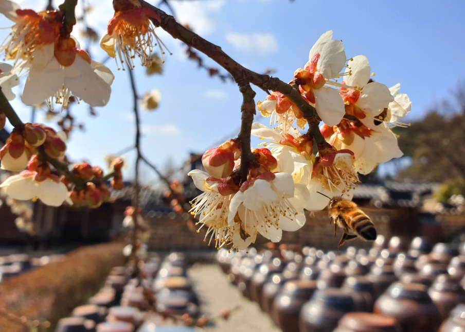 고택, 매화, 즐비한 항아리,