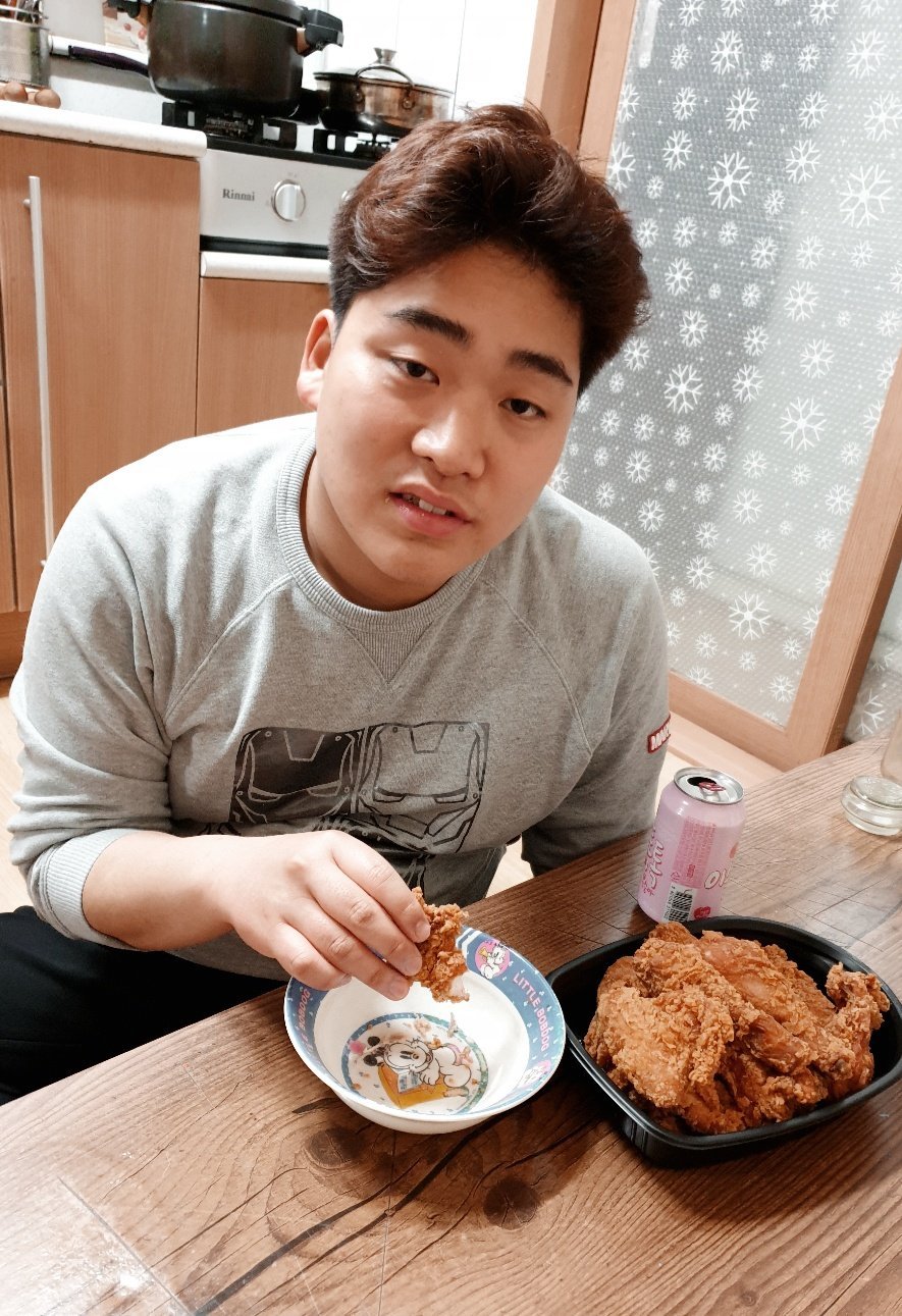 너무도 자연스럽게 치킨과 이슬톡톡을 즐기고 있었다.