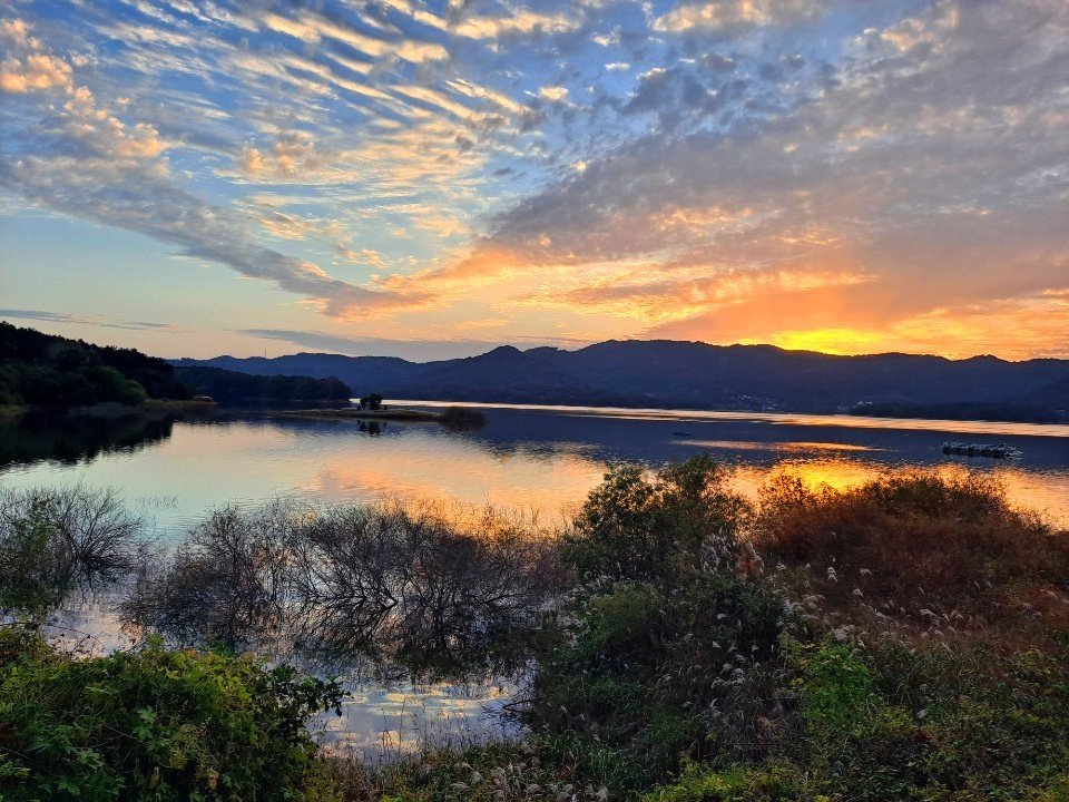 여유롭게 산책하면서 깊이 있는 석양을 만나고