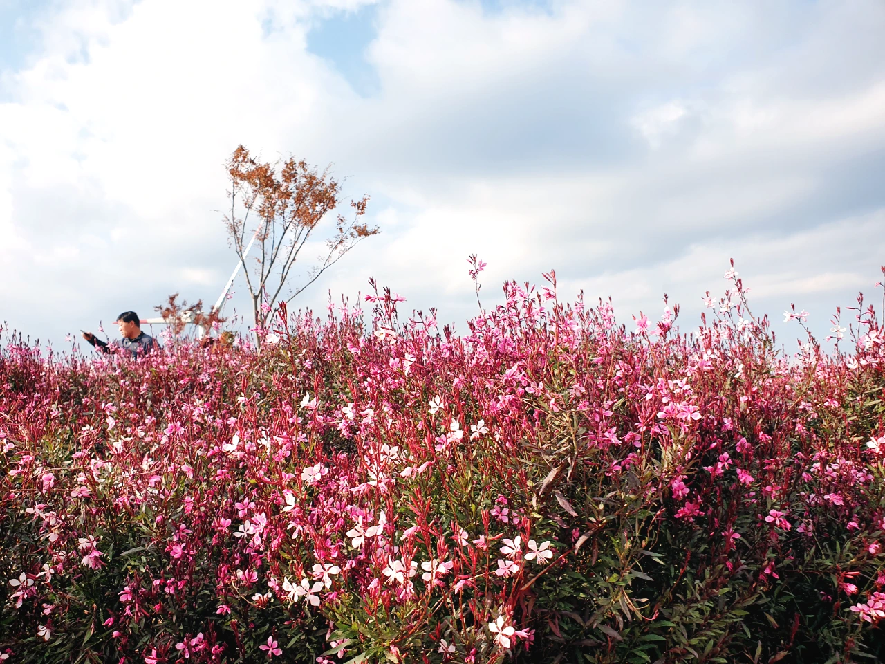 아직 피지 않은 국화들 사이사이로 보완을 하는