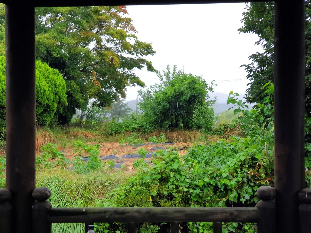 비가 너무 거세게 내려 정자에 자리를 잡고