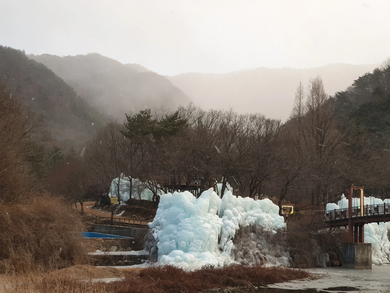 얼음분수에서 가장 가까운 등산로를 선택해 등산 시작.