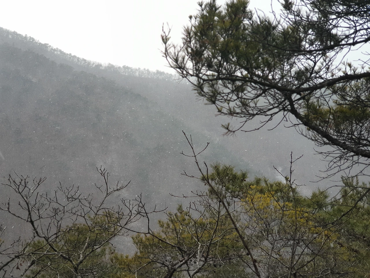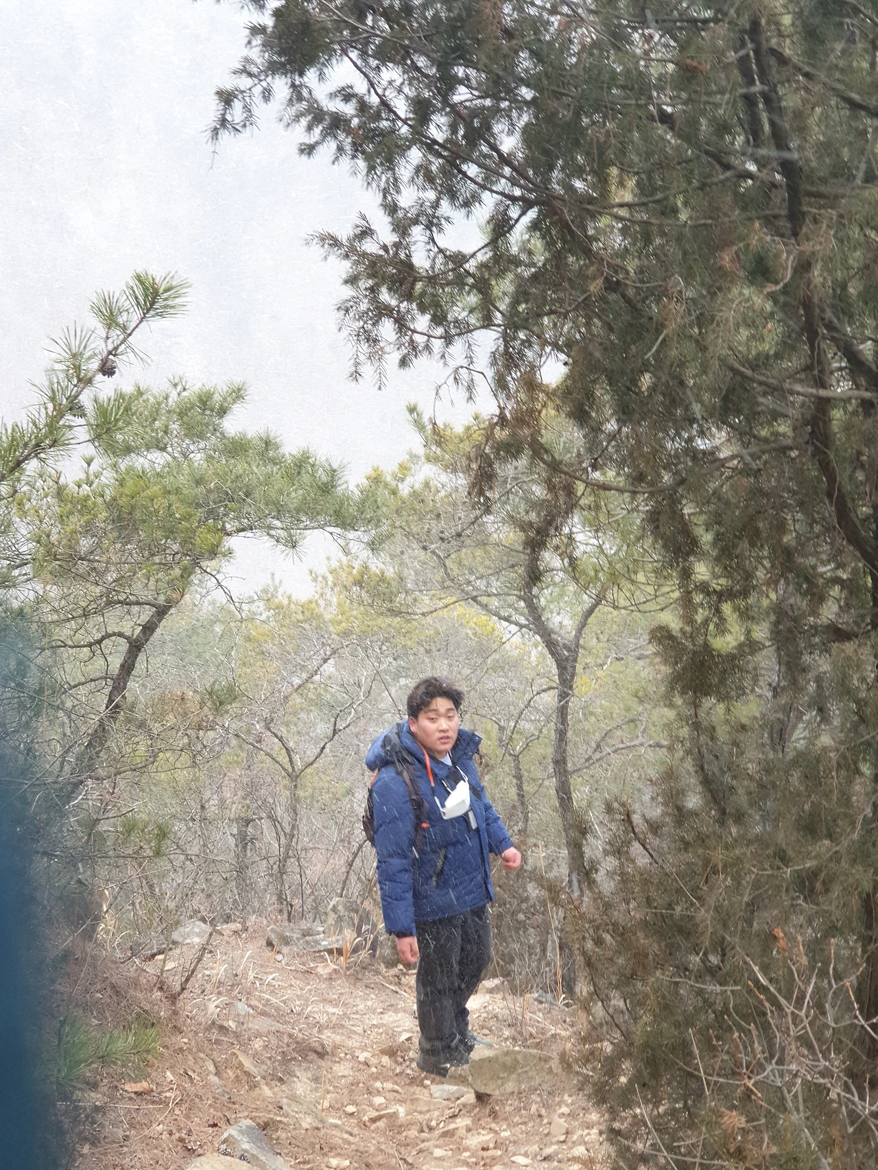 등산 내내 성근 눈발이 날렸고 바람도 거셌다.