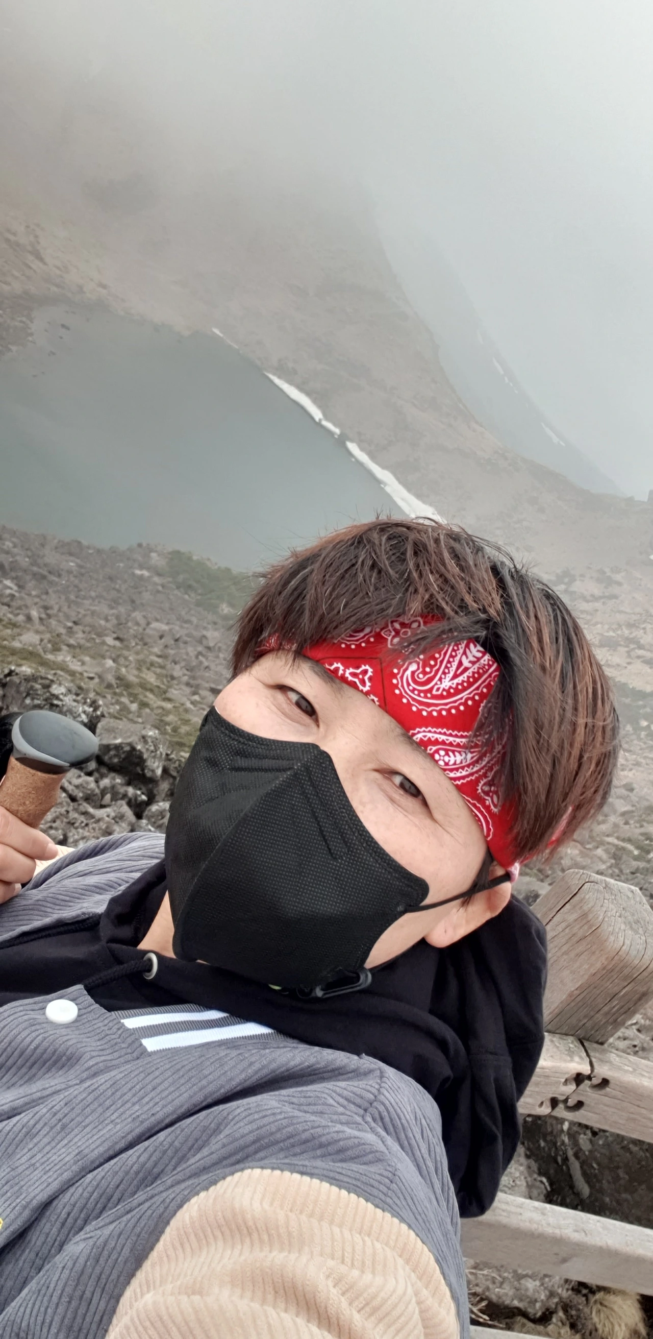 드뎌 백록담에 도착했지만 인증샷을 위해 서 있는 줄은