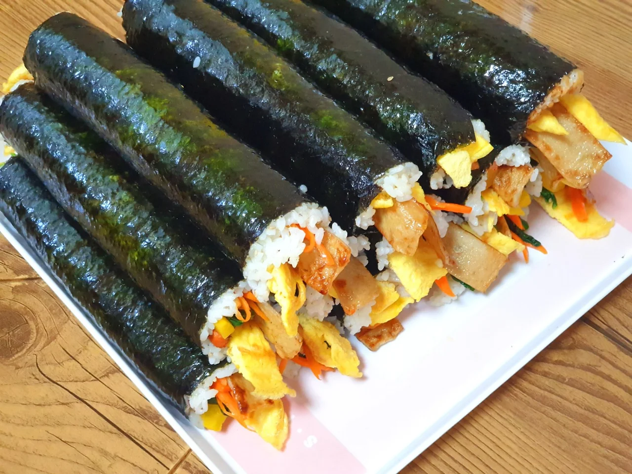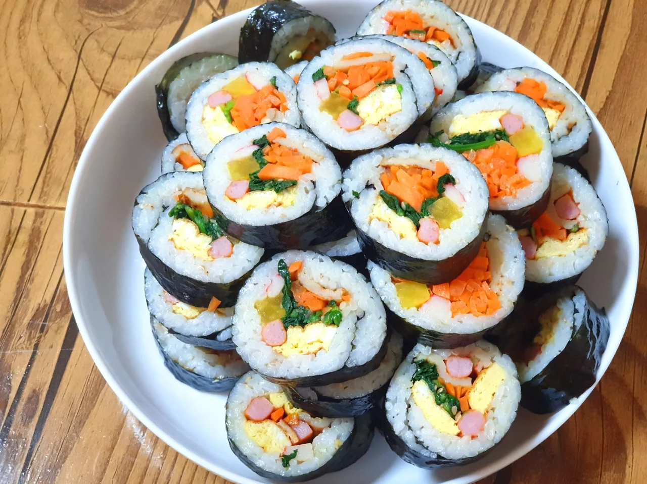 계란, 어묵. 햄, 시금치, 맛살, 단무지, 당근... 7가지 재료를