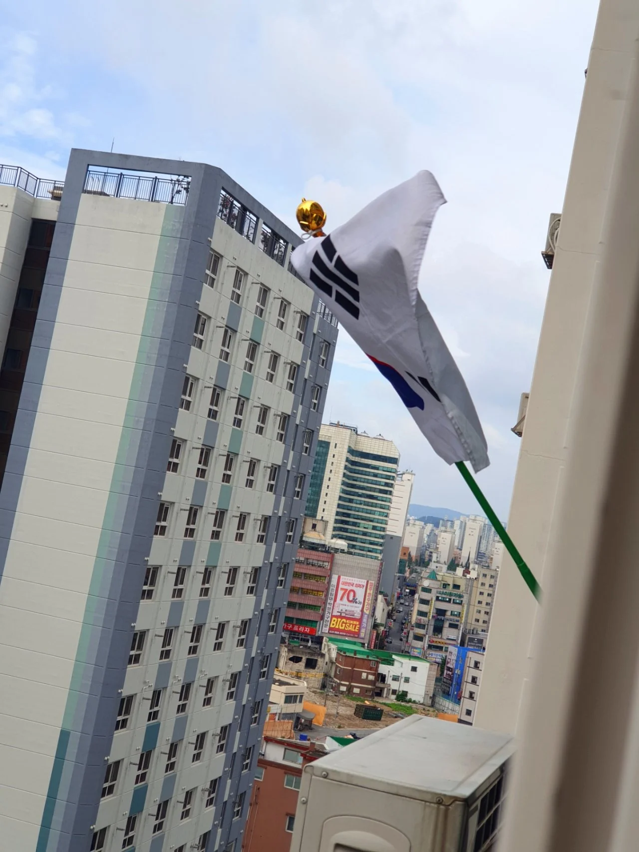 태극기가 바람에 펄럭이고 있습니다....강산에 노래 가사..아파트 방송을 듣고 아들은 제헌절 태극기를 걸었다...!!!