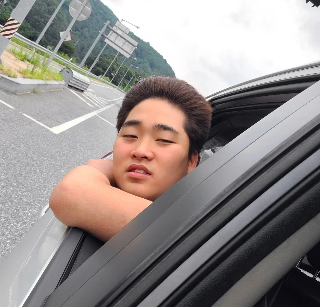 아들은 차 타기를 좋아한다.