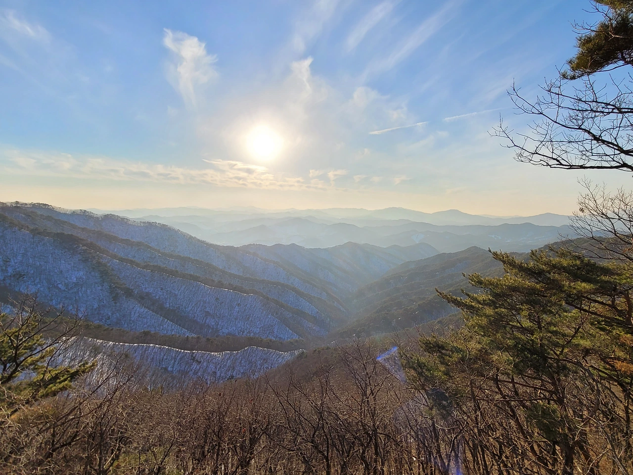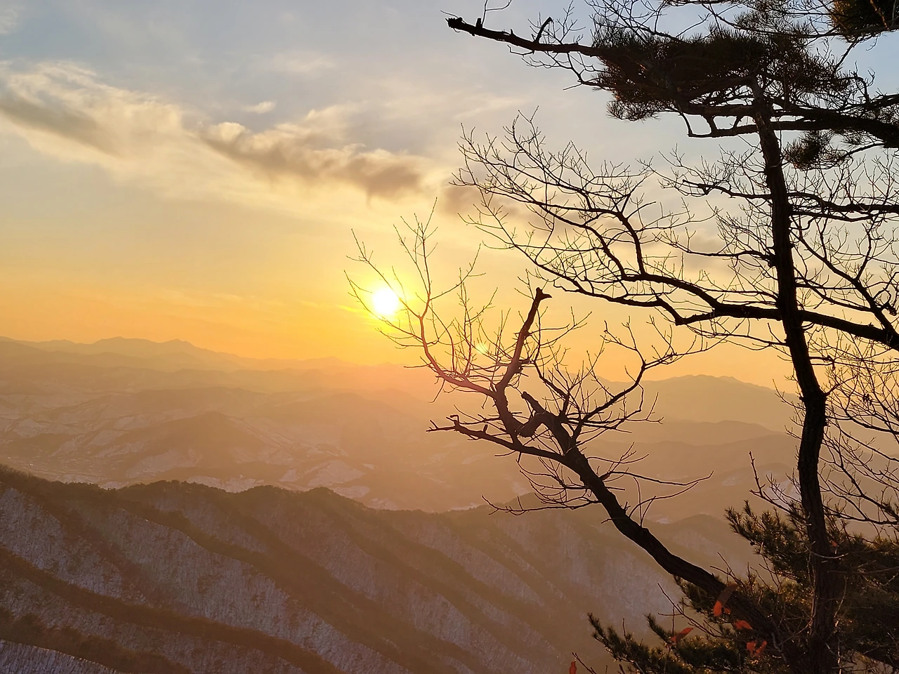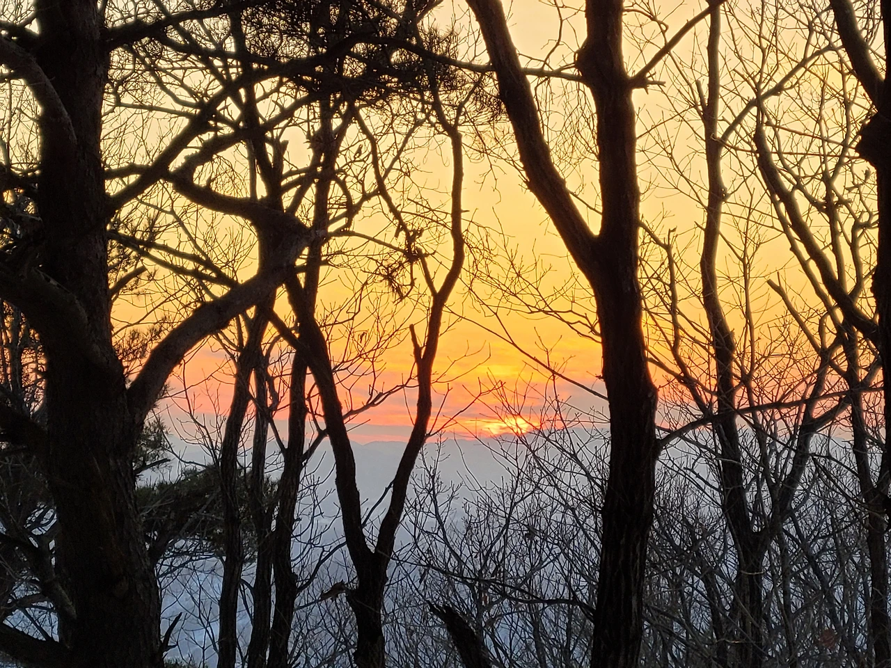 일출은 아니지만 아흔아홉골과 해의 어우러짐에