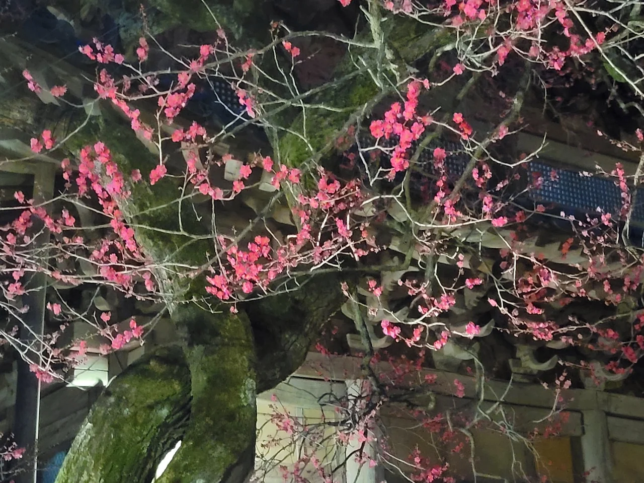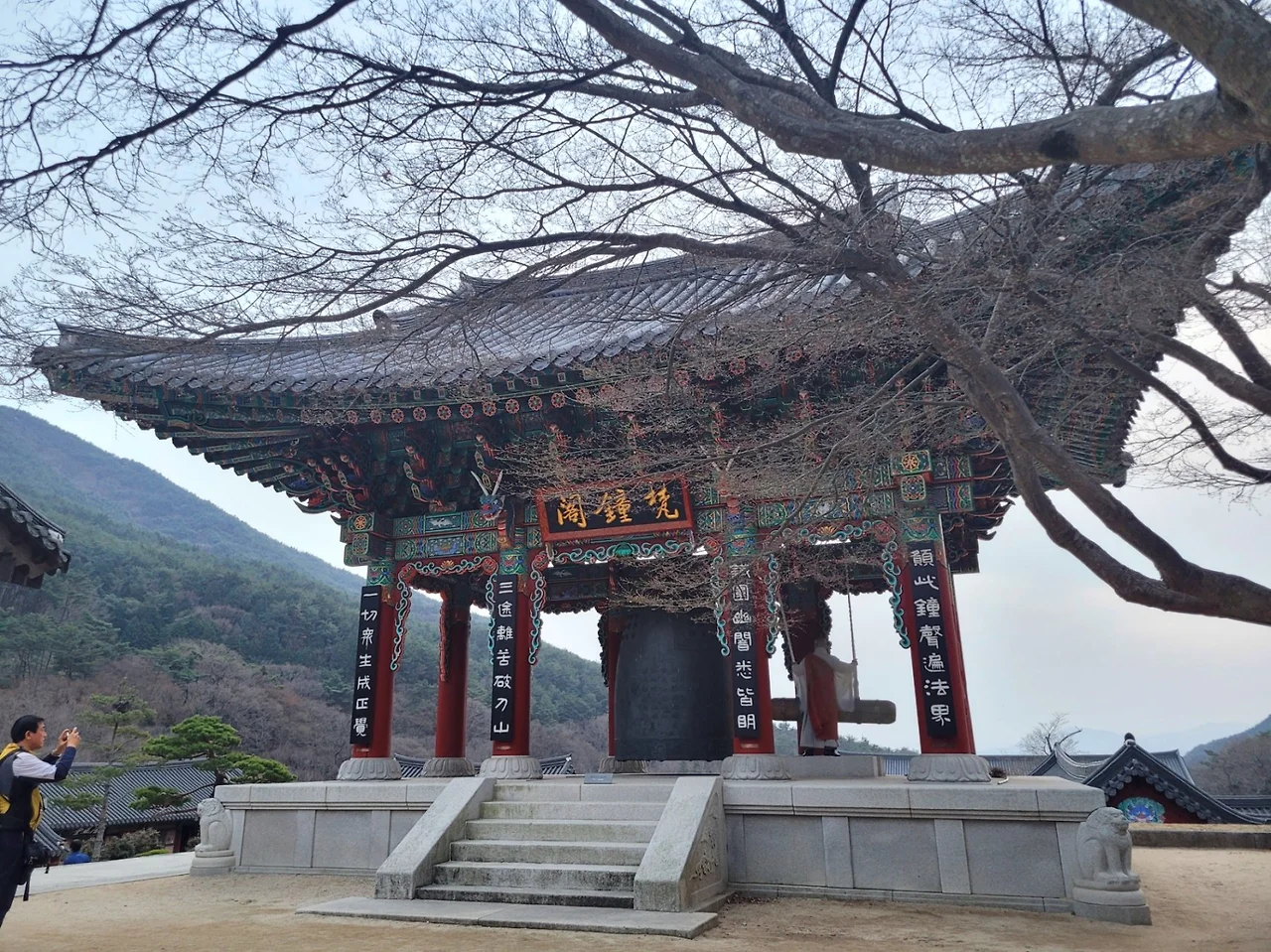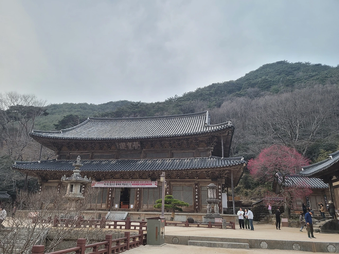 홍매는 아직 만개 전이고 때맞춰 저녁예불 시작.