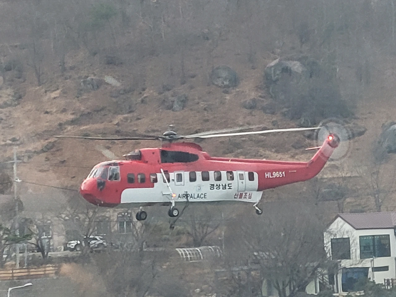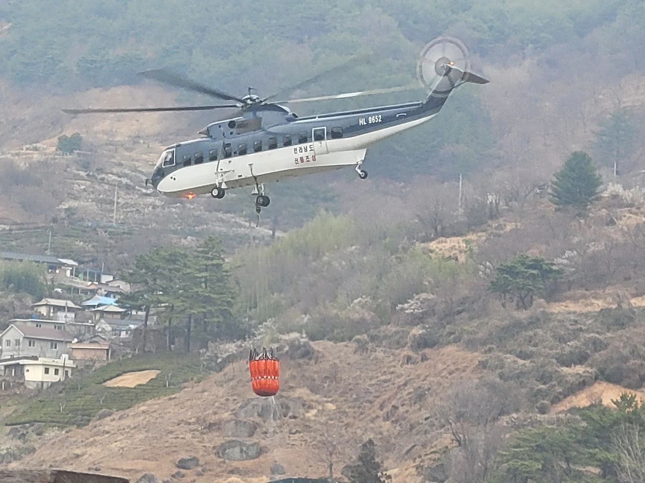 헬기가 수차례 퍼올리는 상황을 보게 되었다.