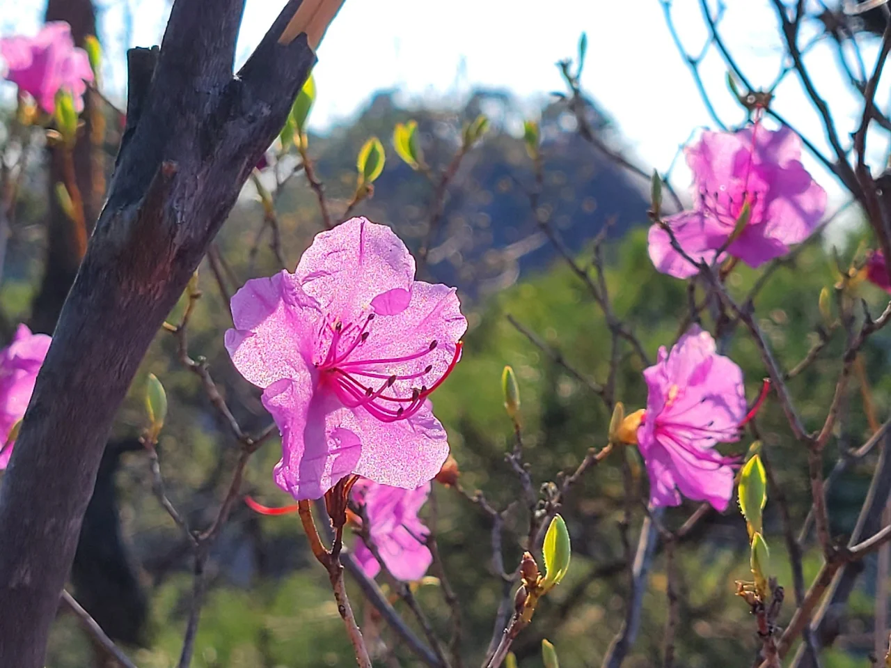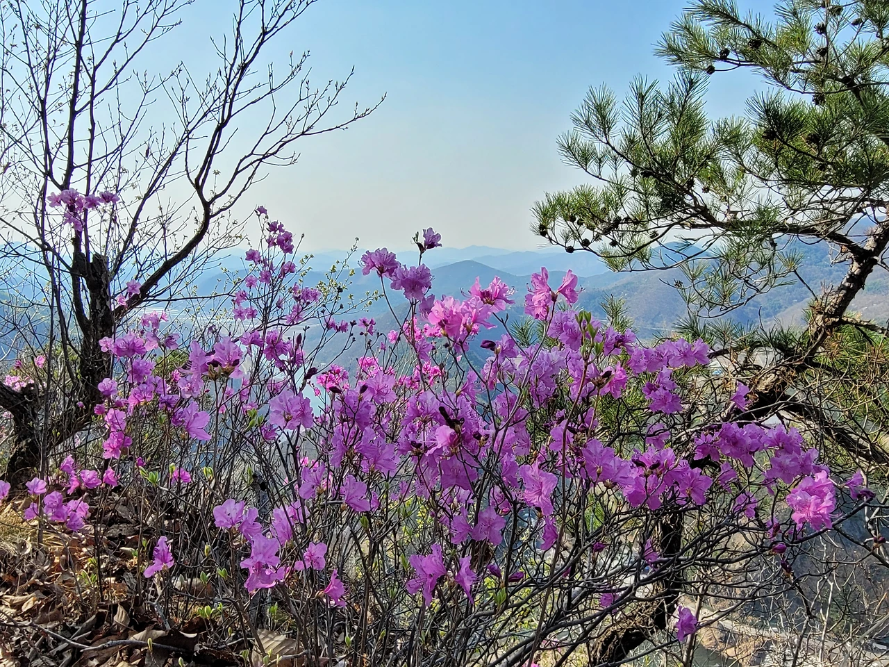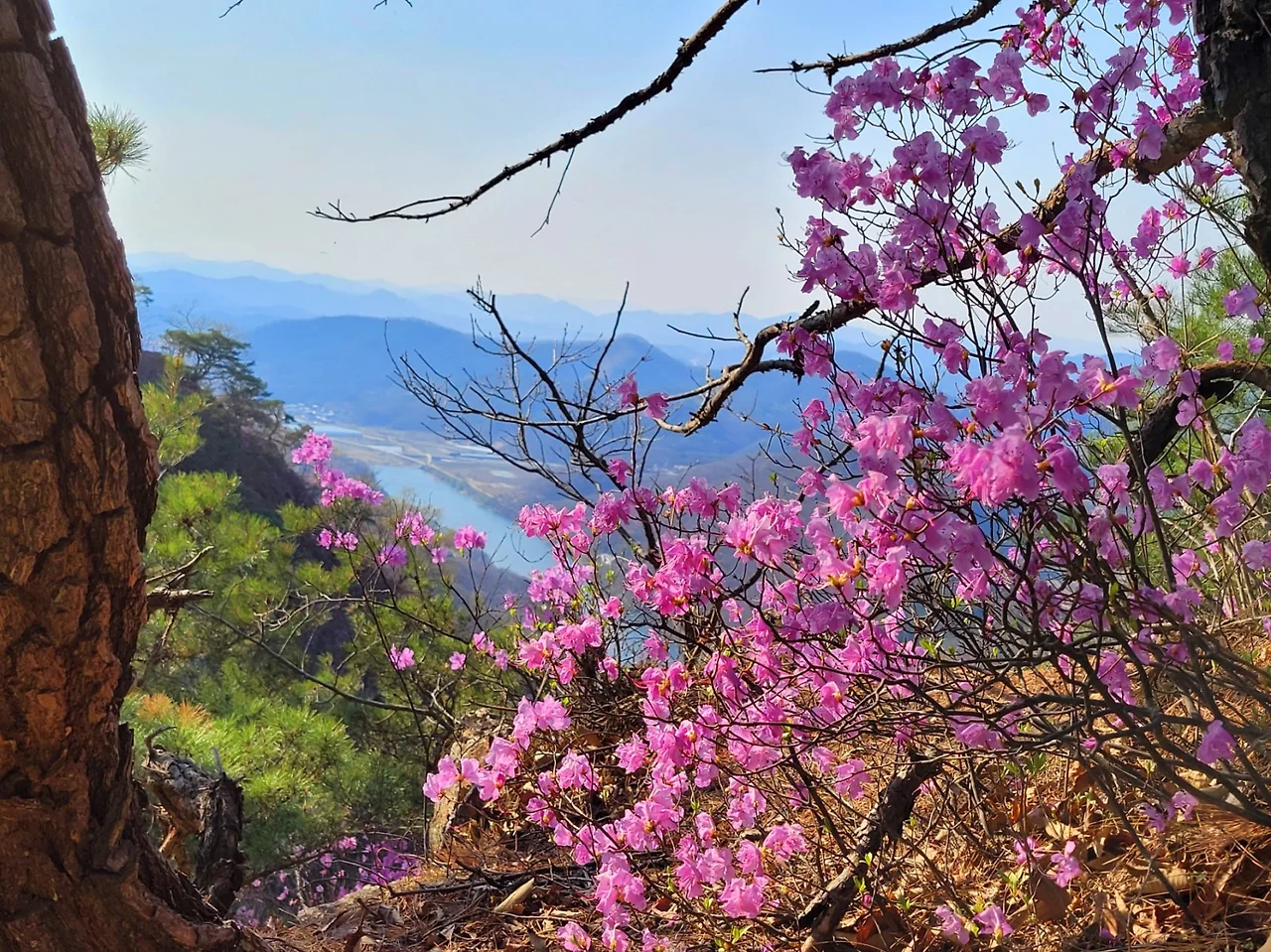 진홍빛 진달래가 봉우리마다 반겨 맞아주니