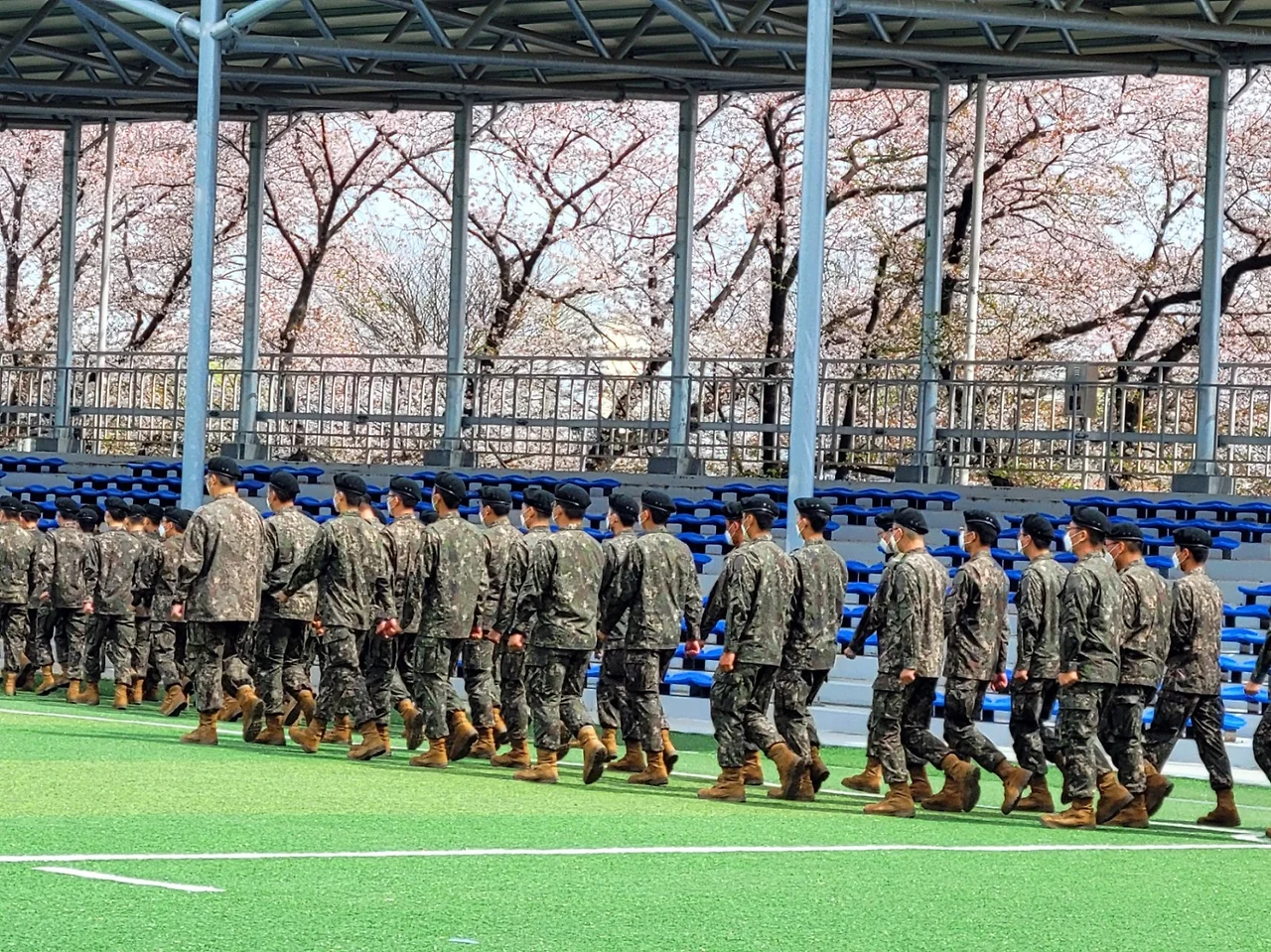 벚꽃이 흐드러지다 못해 이미 시들어버린 연병장에서