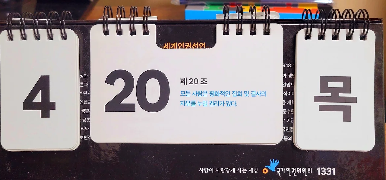 국가인권위원회에서 전해 준 탁상용 달력에 쓰인