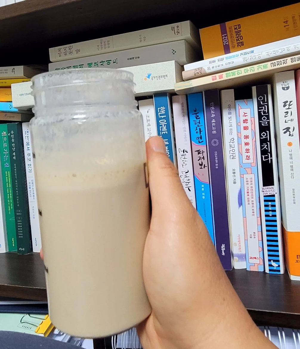 아드님 질문의 의도를 알기에 내가 마시고 내려놓으면