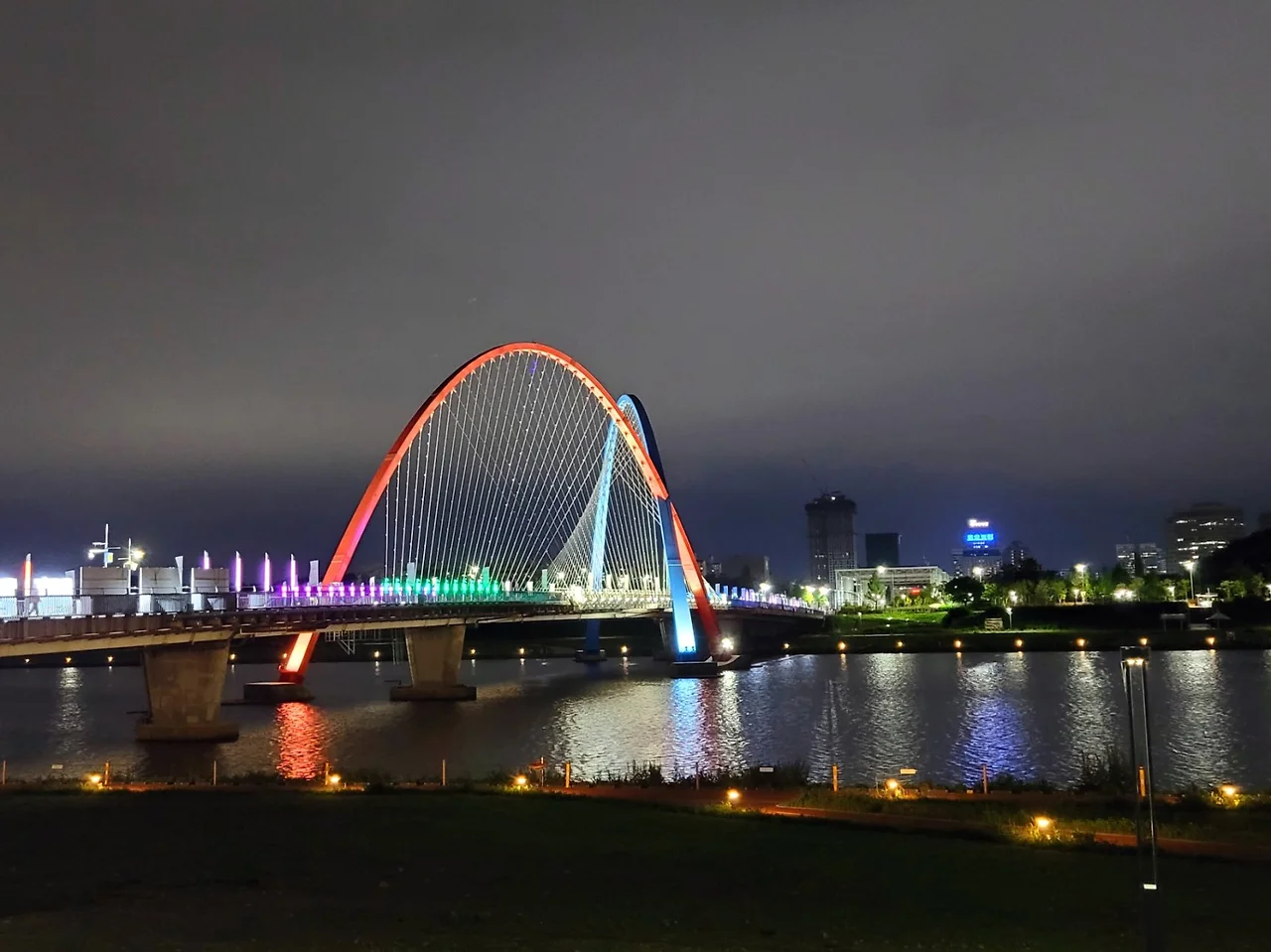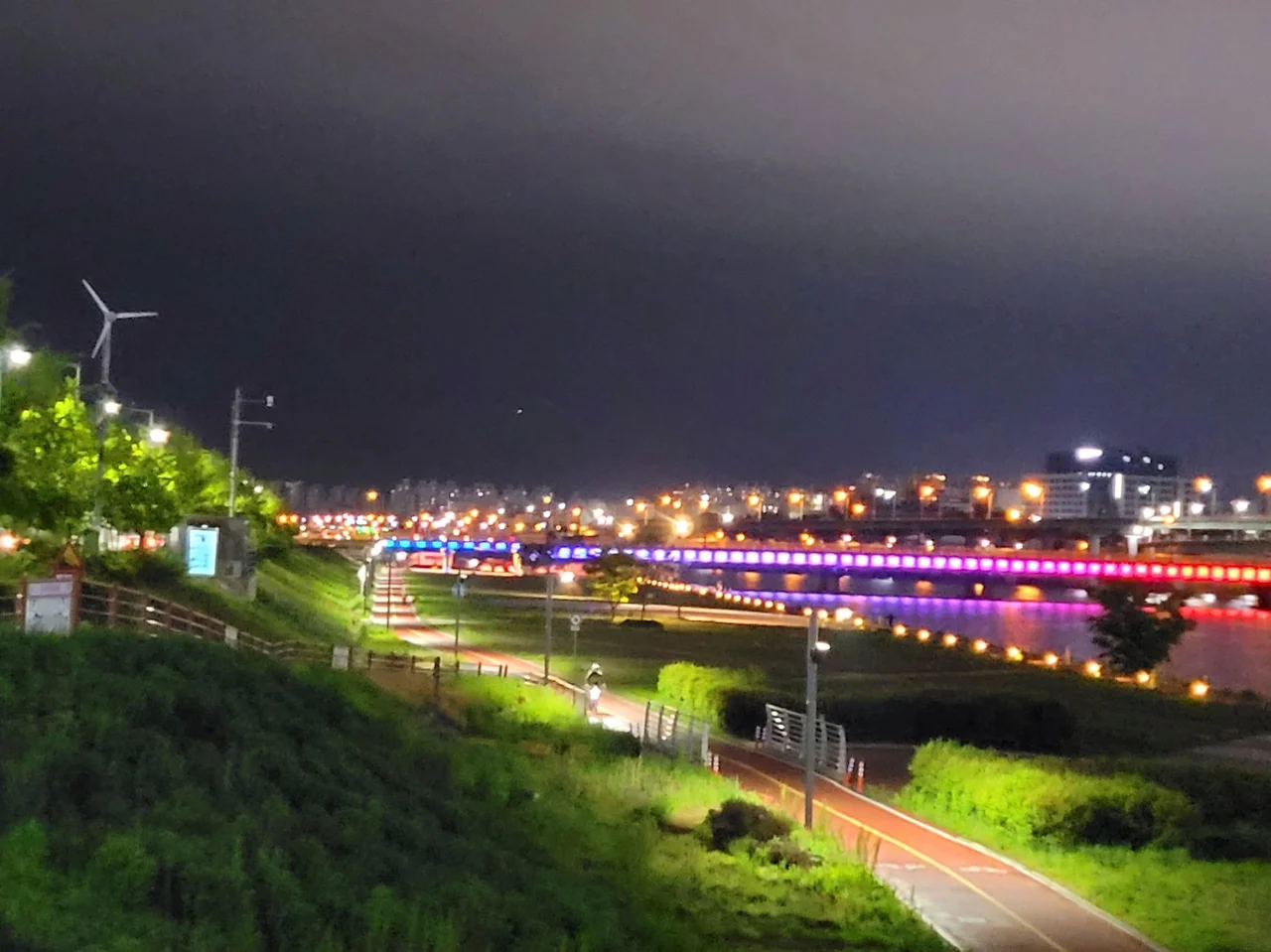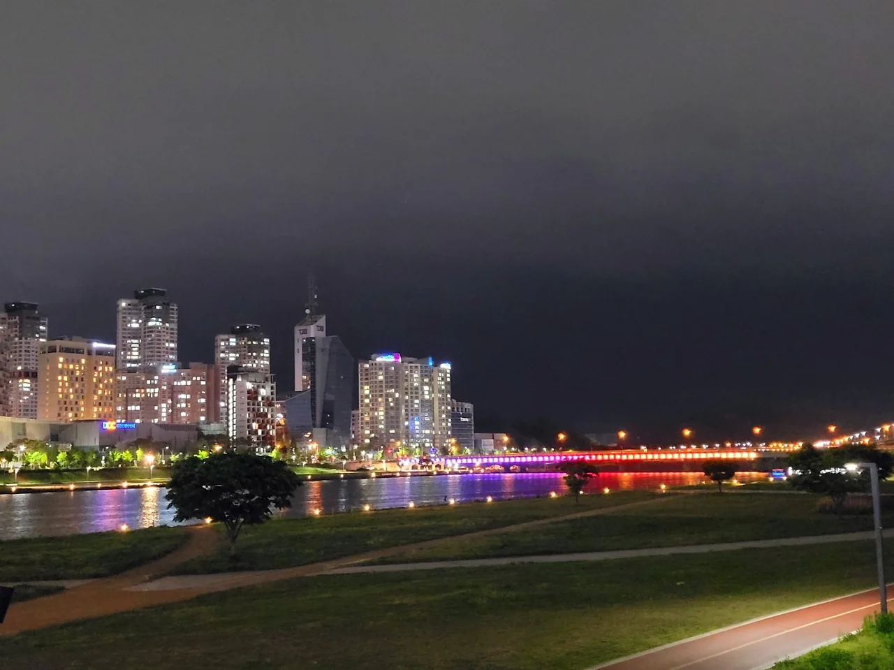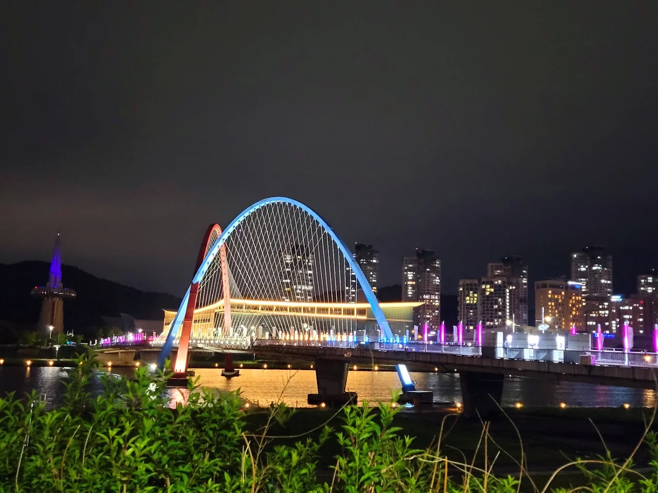 엑스포 다리를 지나 갑천변의 야경을 즐기며 산책.