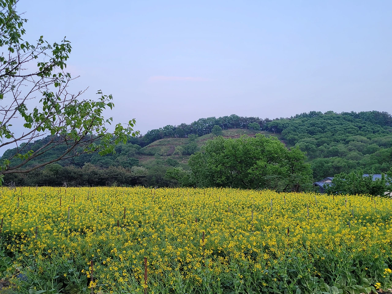 주변 밭엔 마늘과 완두콩, 유채꽃이 사랑 듬뿍 머금고