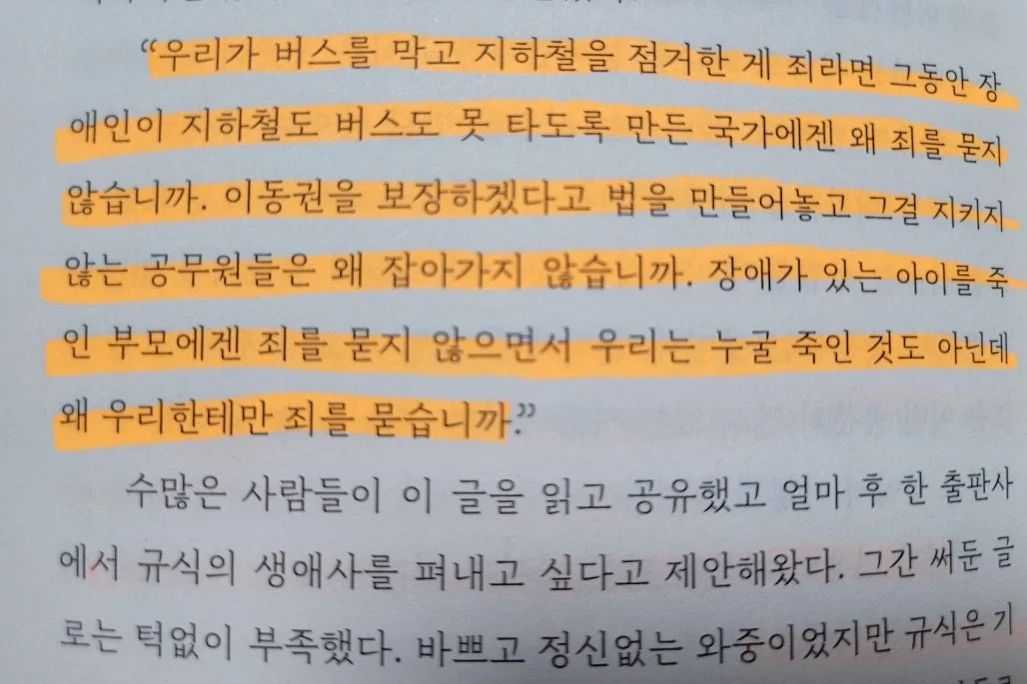 전장연 티셔츠를 보고 넘 멋있다며 어디서 샀냐고