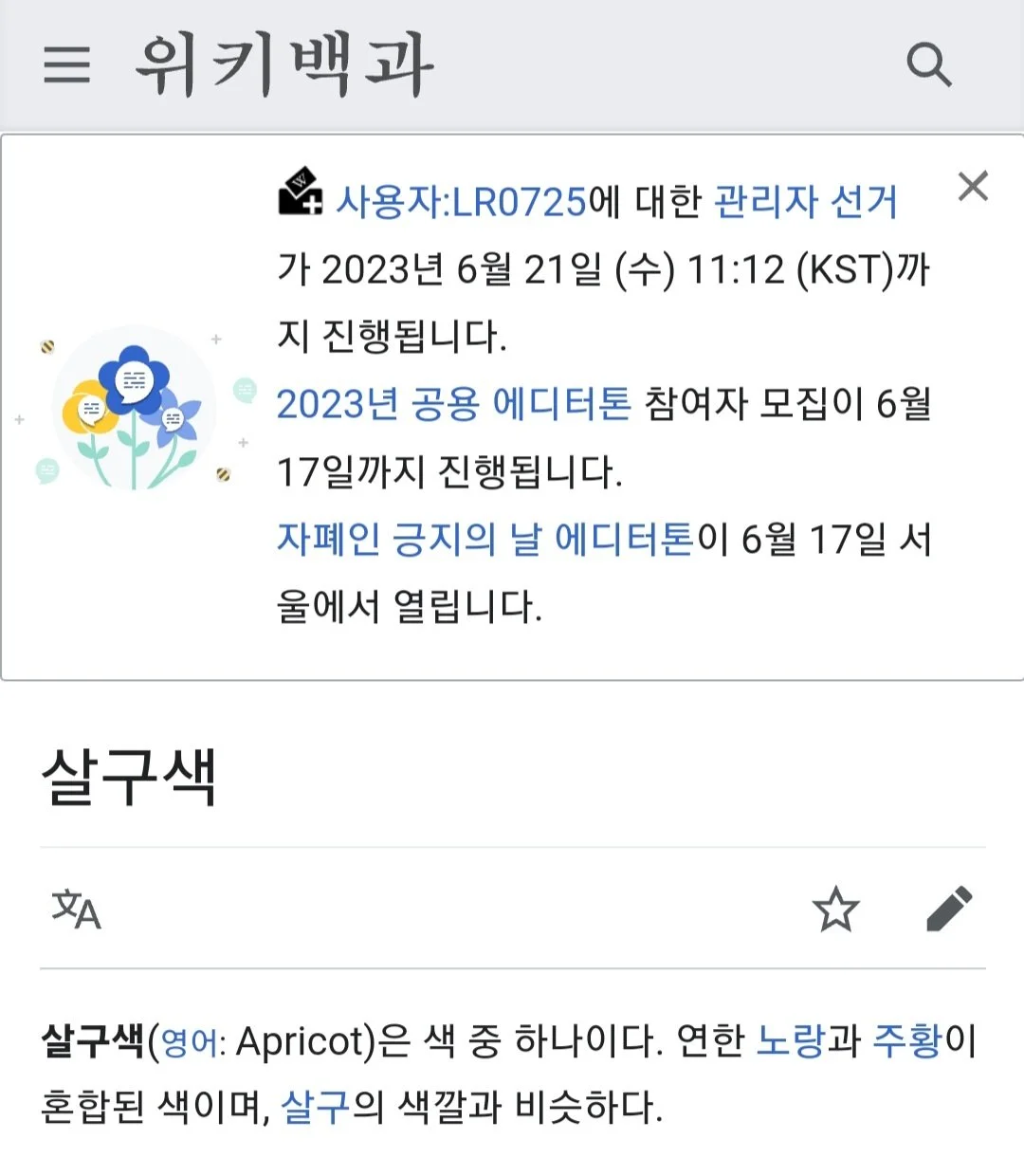집에 돌아와 살구색을 검색해 봤다.