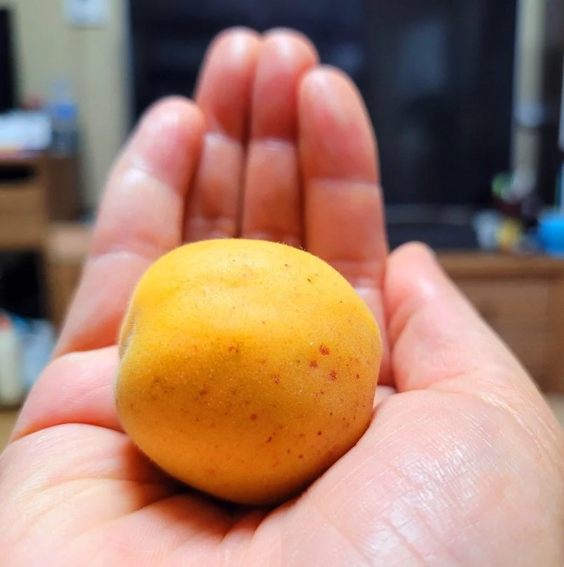 그리고 내 손에 살구를 올려놓고 비교해 봤다.