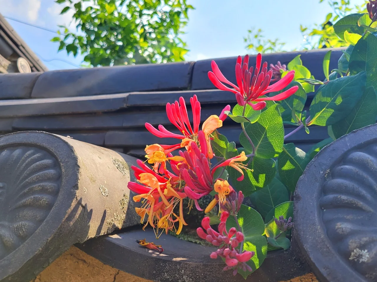 인동초 붉은 꽃이 기와와 어우러짐도 좋았다.