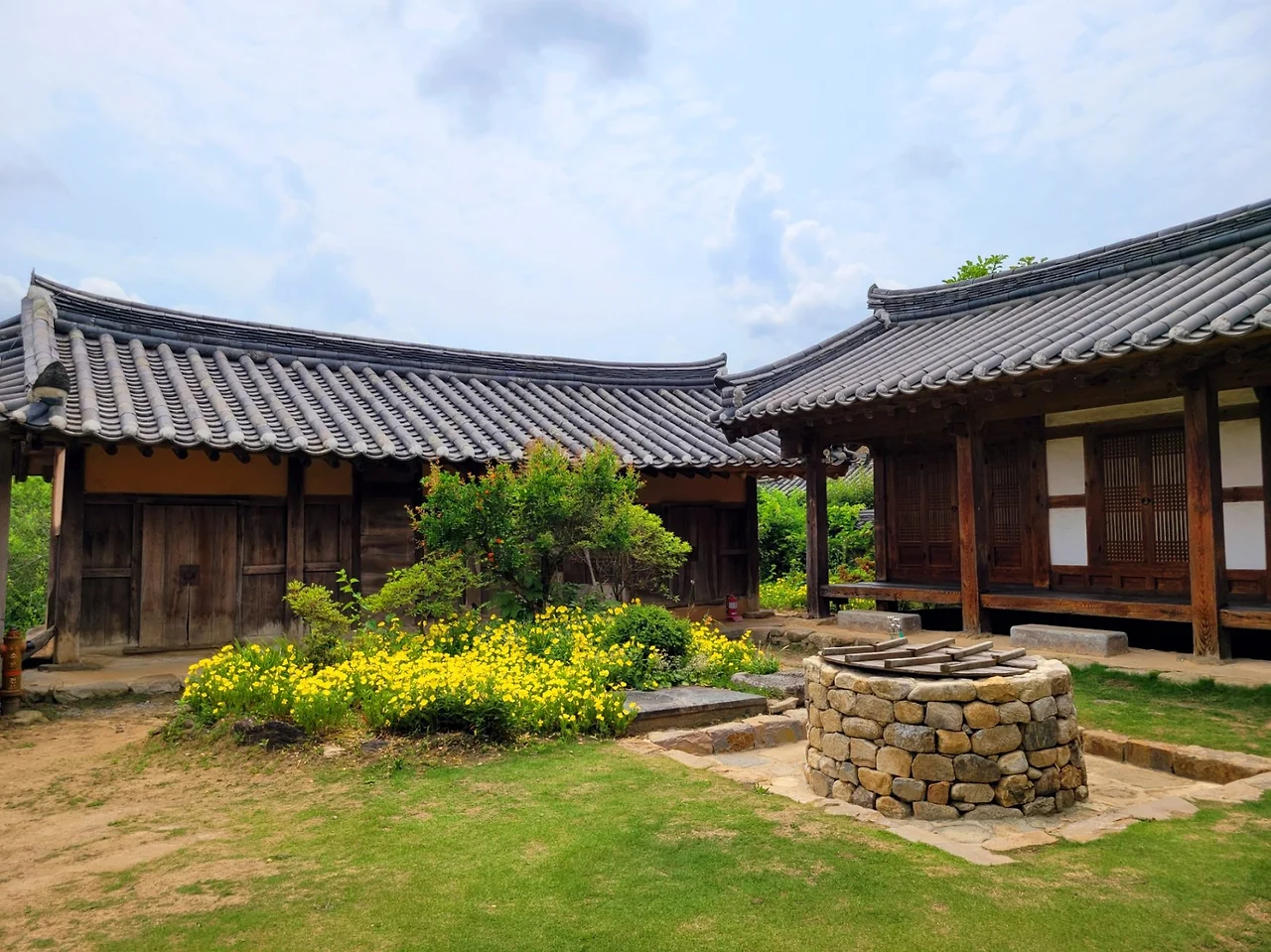 6월의 하늘과 신록이 고택의 풍경과 잘 어우러졌다.